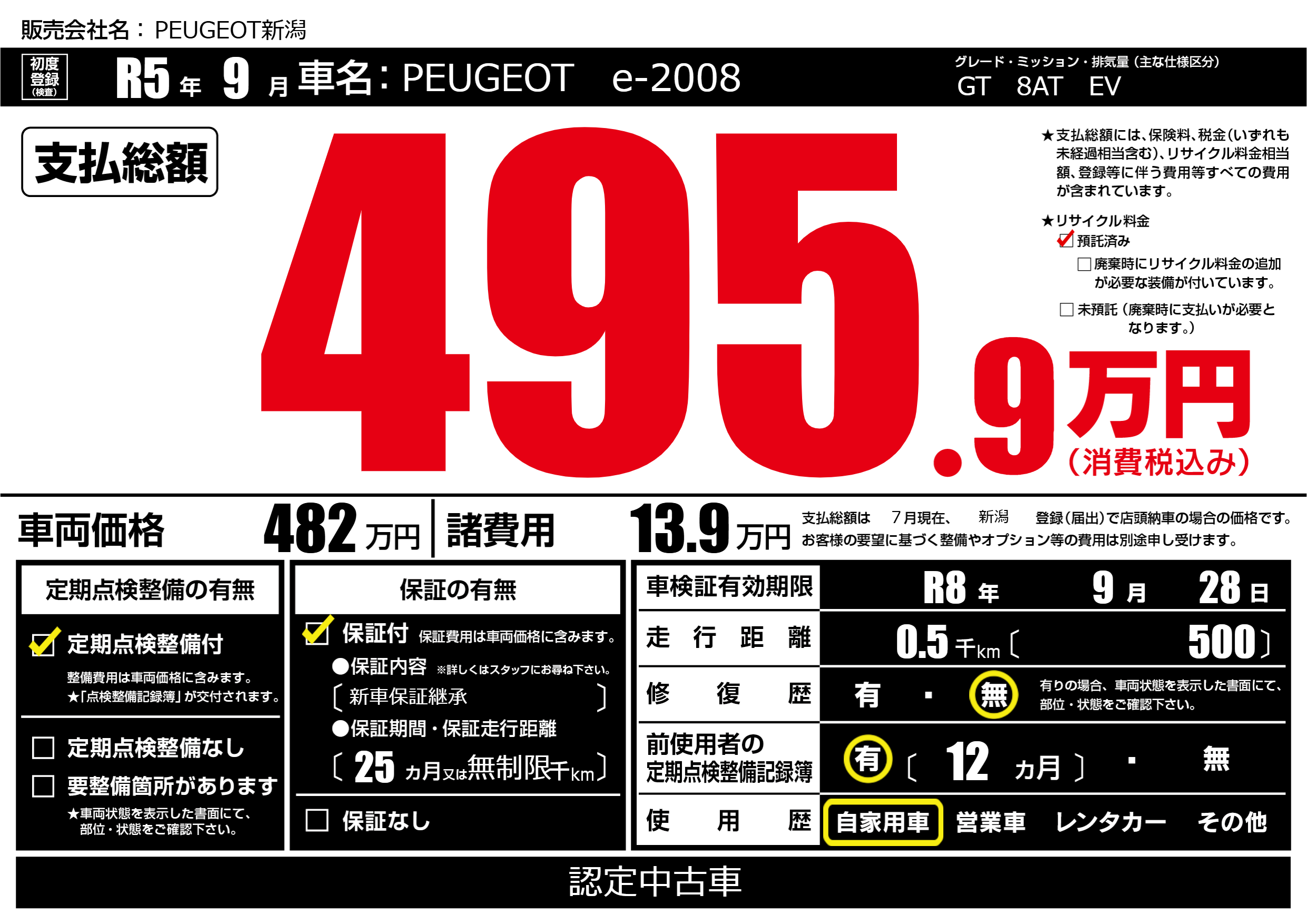 | 車名 | PEUGEOT e-2008 | グレード ミッション 排気量 |