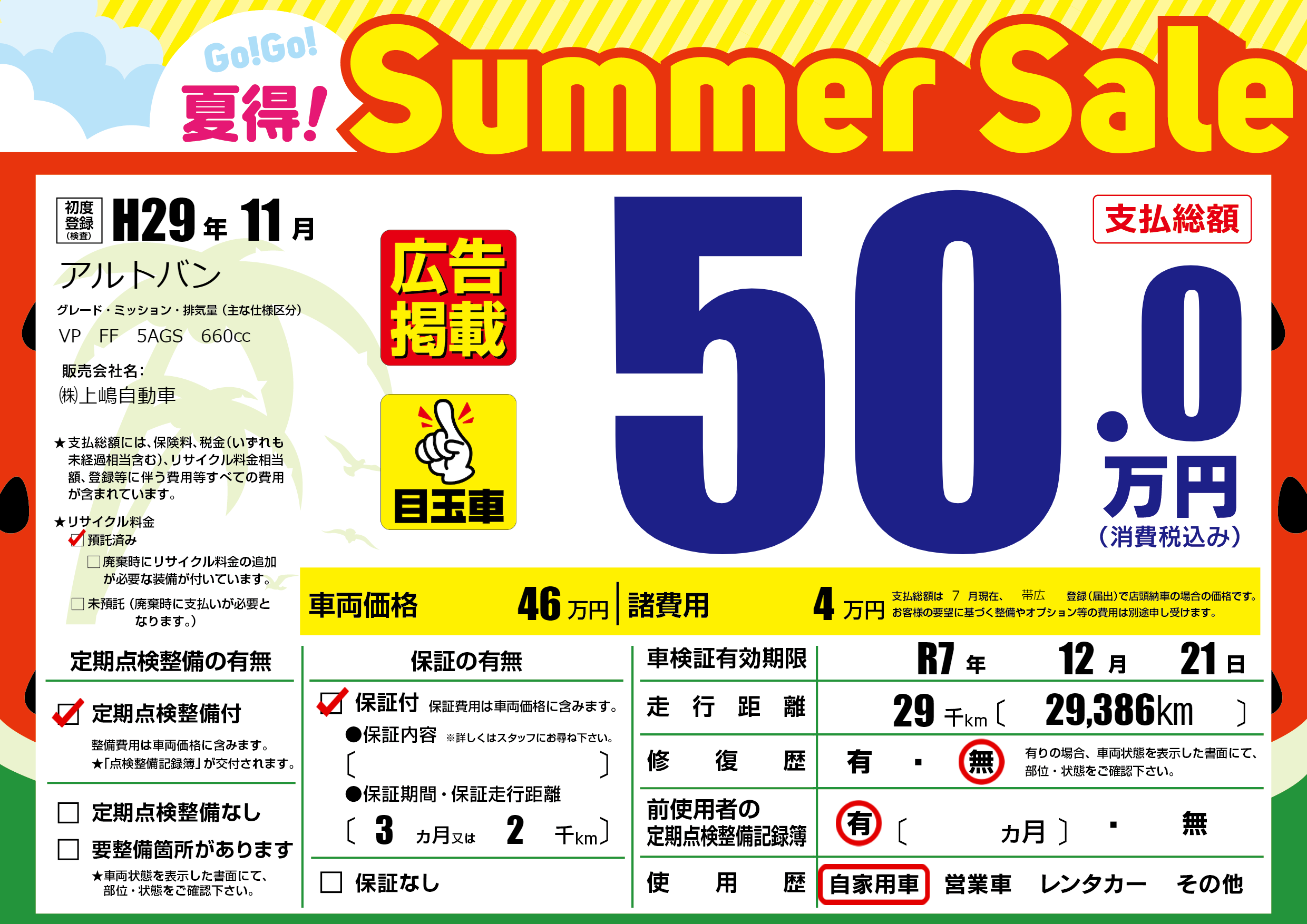 なし | 車検制限 | R7年12月21月 |