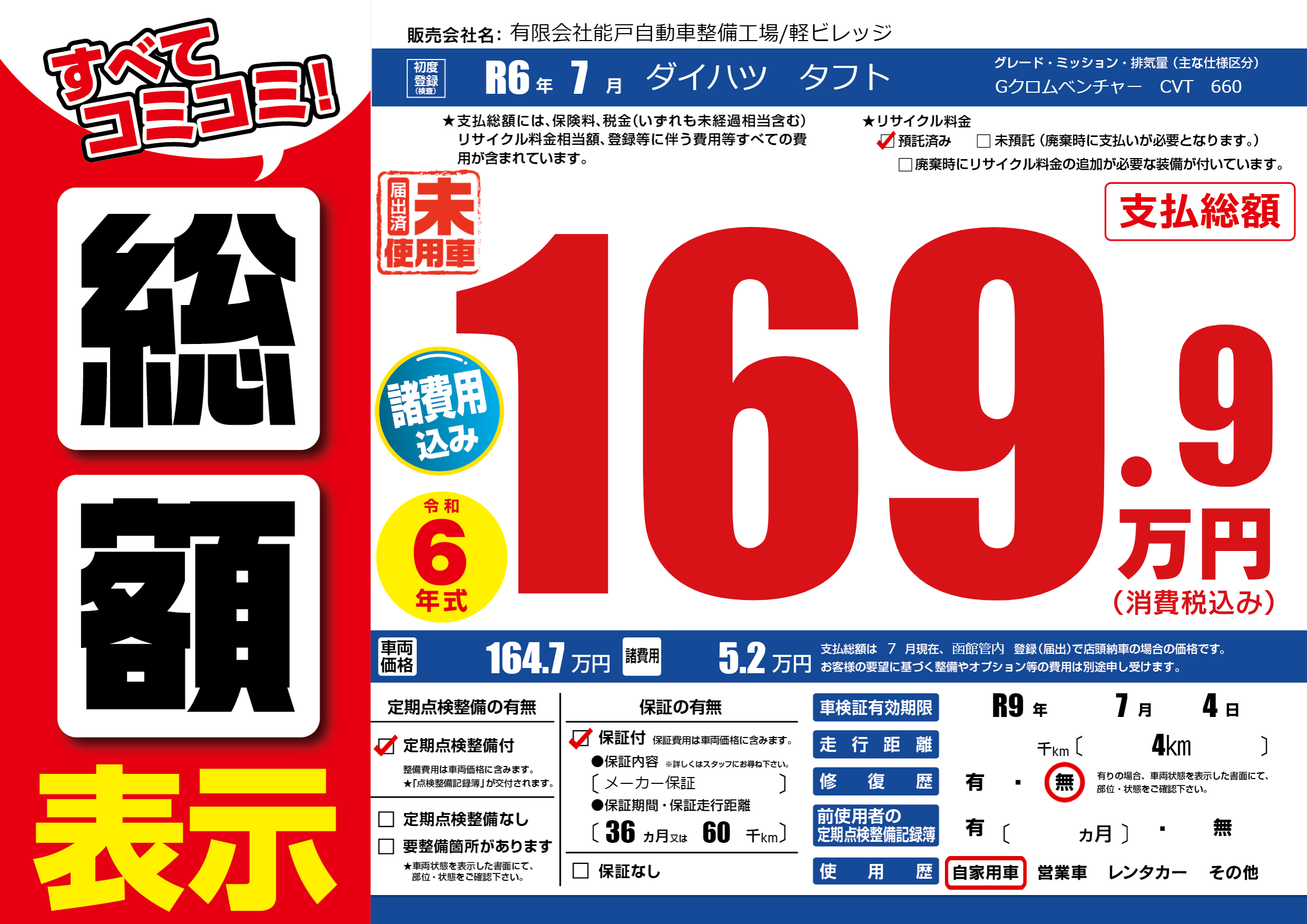 | 走行キロ | - | 初年度登録 | R6年7月 |