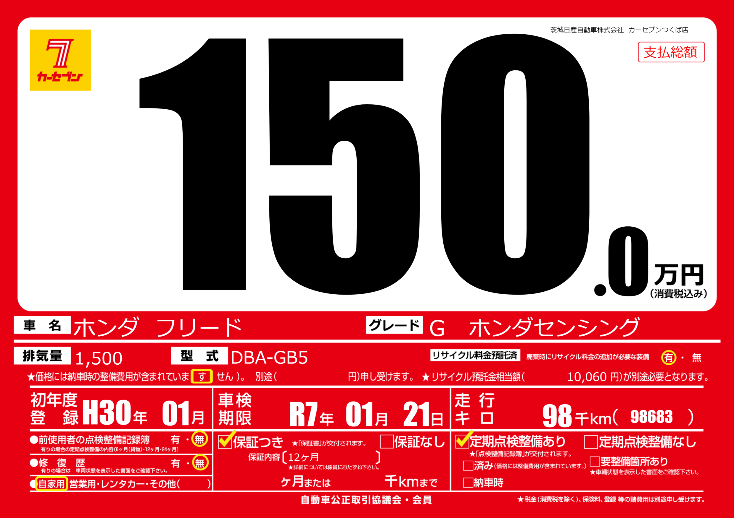 保証付き 保証内容(12ヶ月) ヶ月または千km |