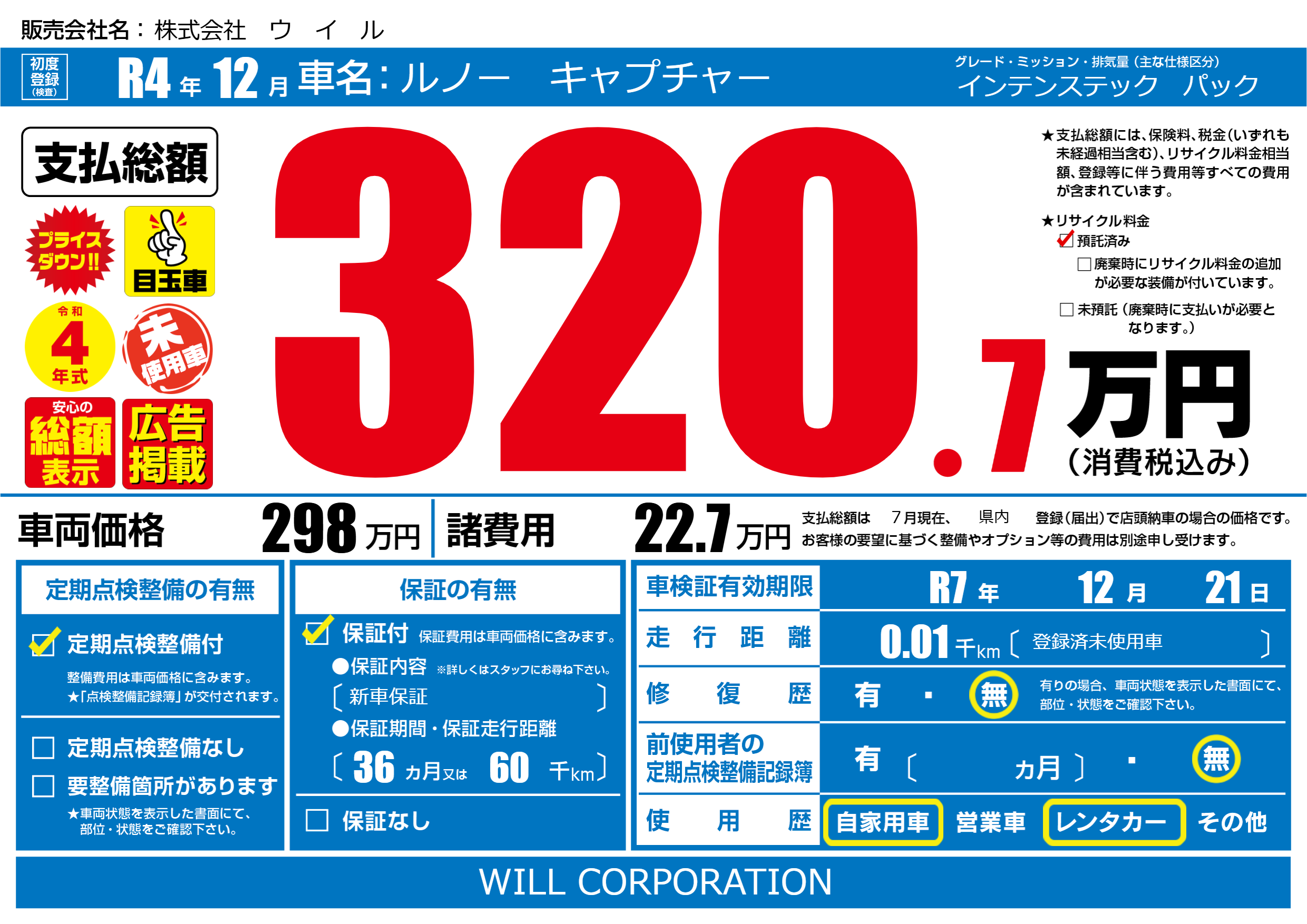 | 走行キロ | - | 初年度登録 | R4年12月 |