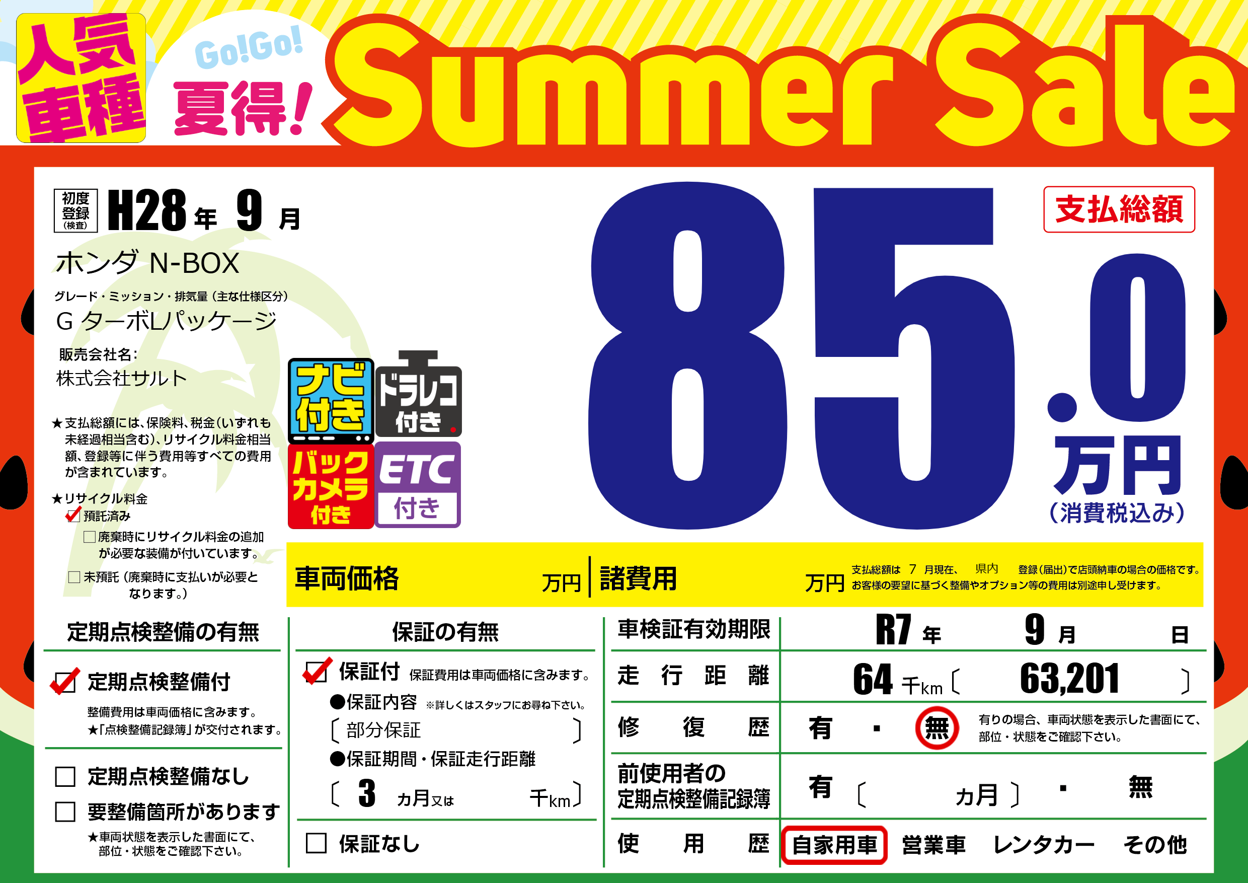 | 走行キロ | 6.4万km | 初年度登録 | H28年9月 |