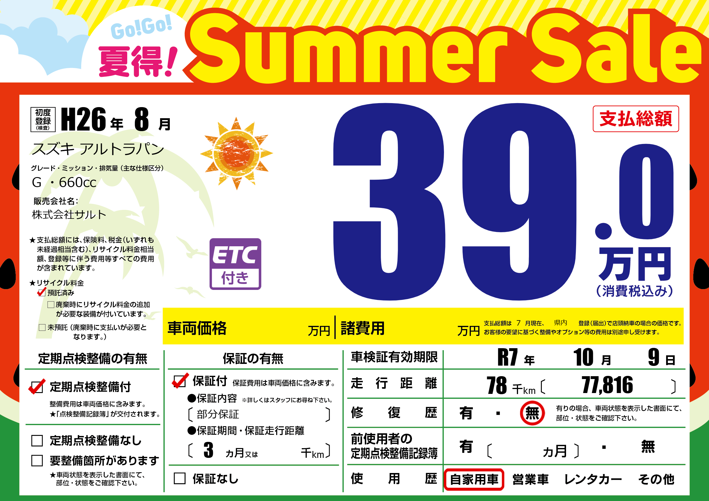 なし | 車検制限 | R7年10月9月 |