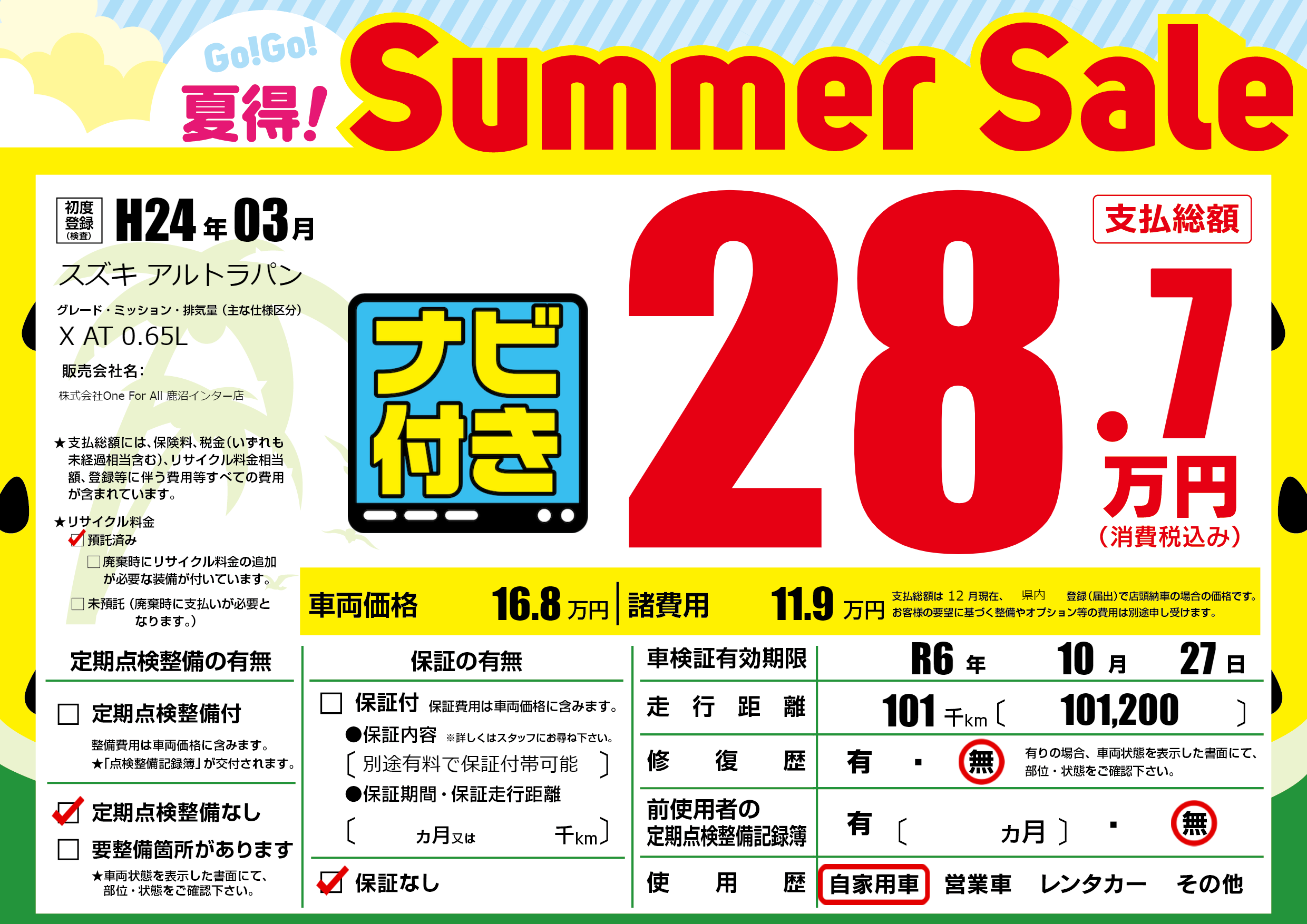 | 走行キロ | 10.1万km | 初年度登録 | H24年03月 |