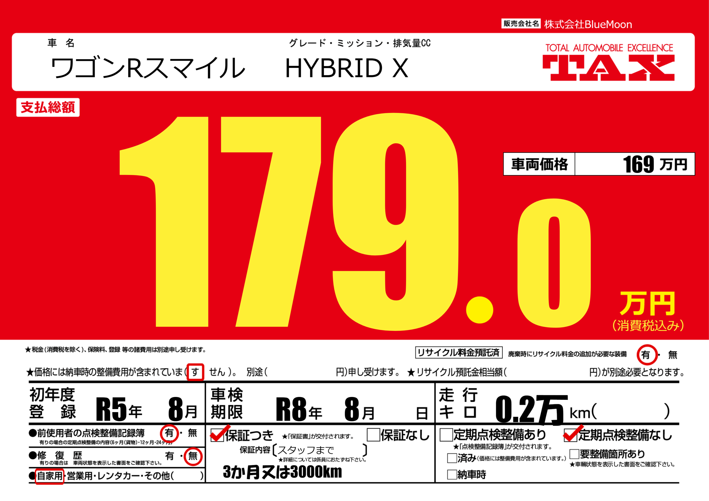 | 車名 | ワゴンRスマイル | グレード ミッション 排気量 |