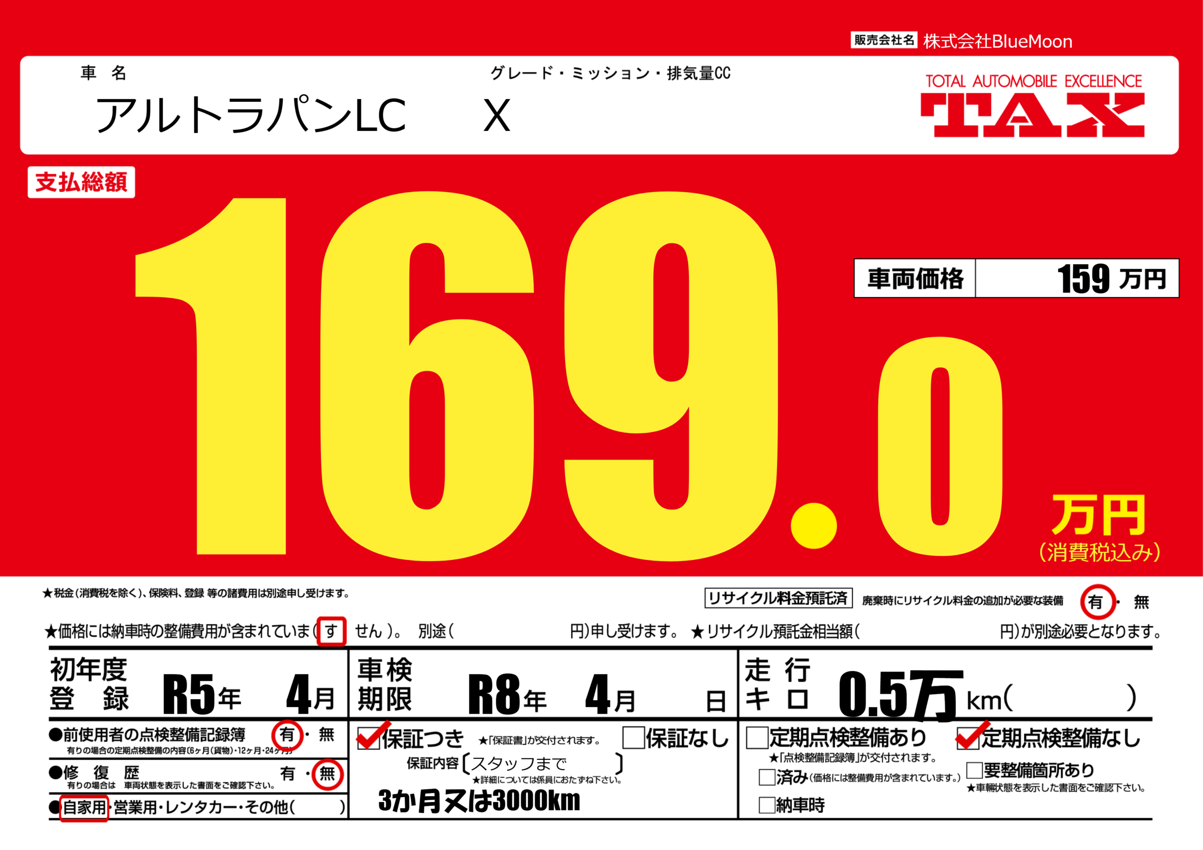 | 走行キロ | - | 初年度登録 | R5年4月 |
