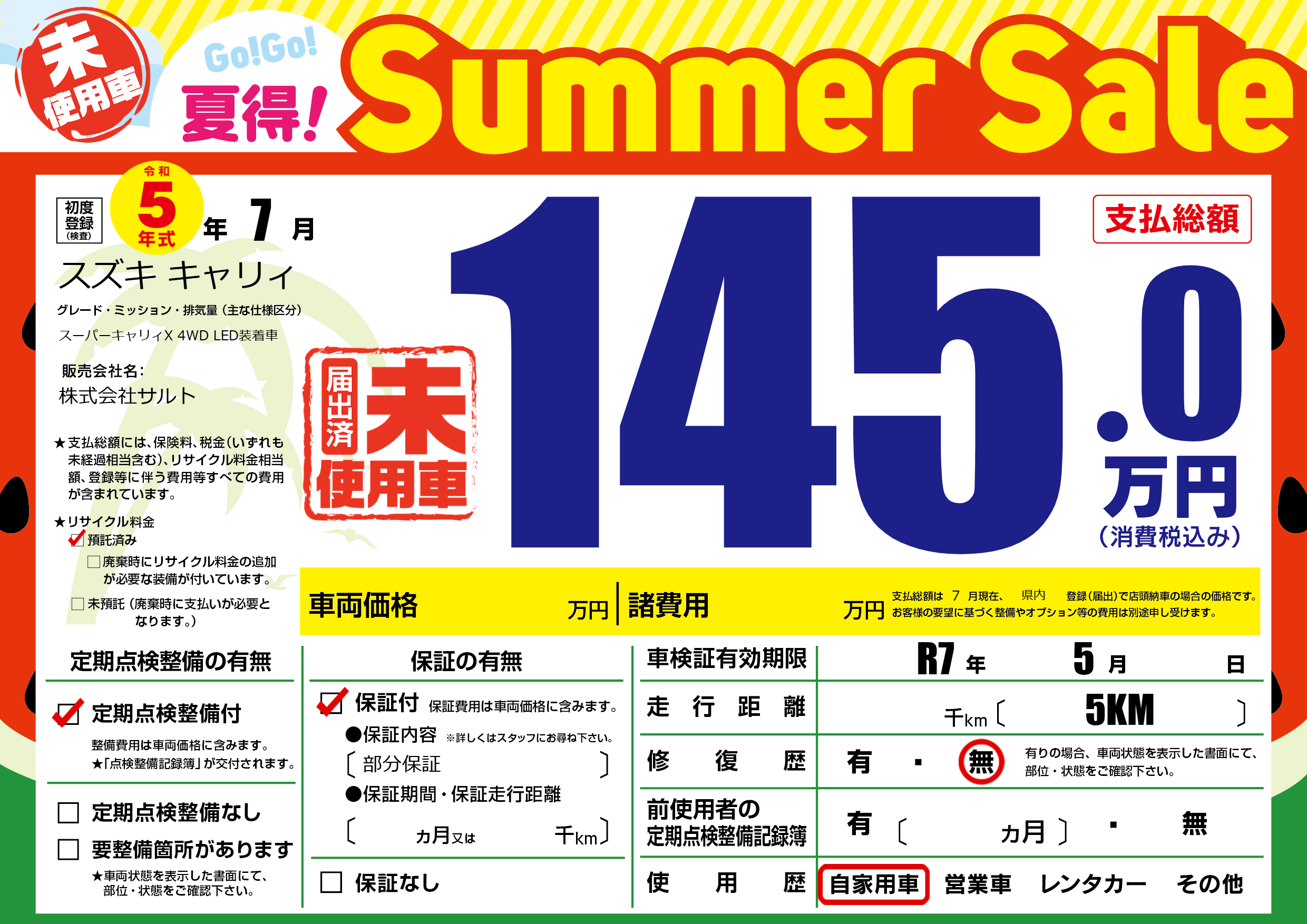 | 走行キロ | - | 初年度登録 | R5年7月 |
