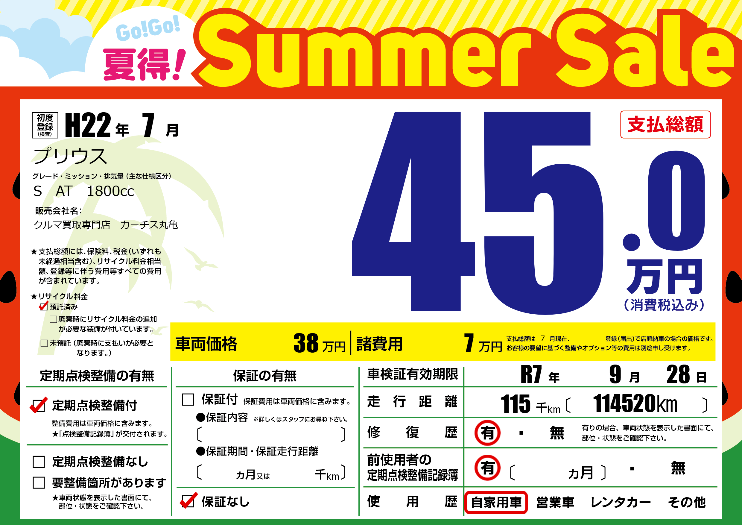 | 走行キロ | 11.5万km | 初年度登録 | H22年7月 |