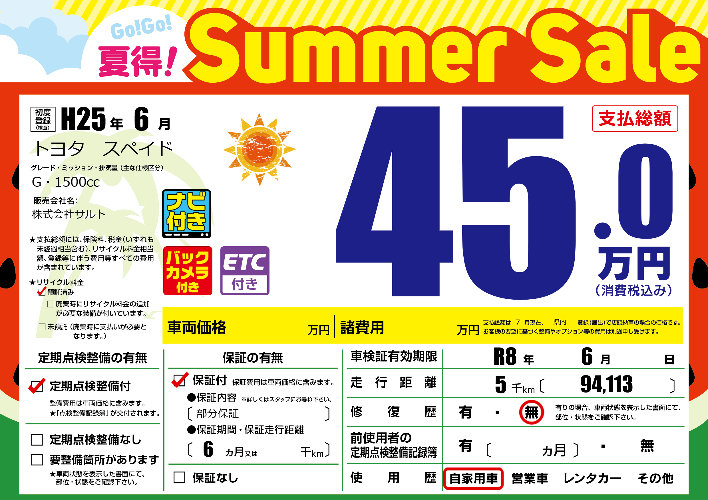 なし | 車検制限 | R8年6月---月 |