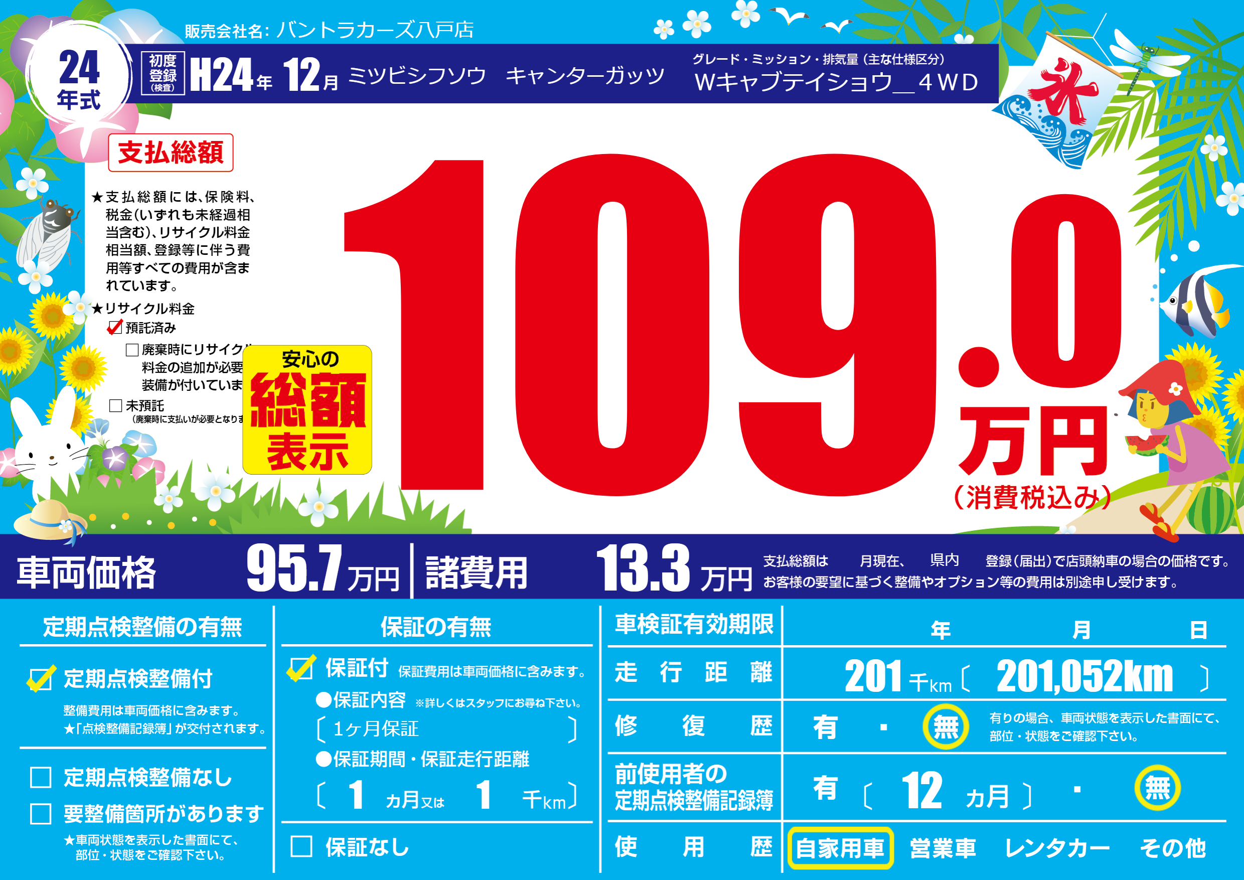 | 走行キロ | 20.1万km | 初年度登録 | H24年12月 |