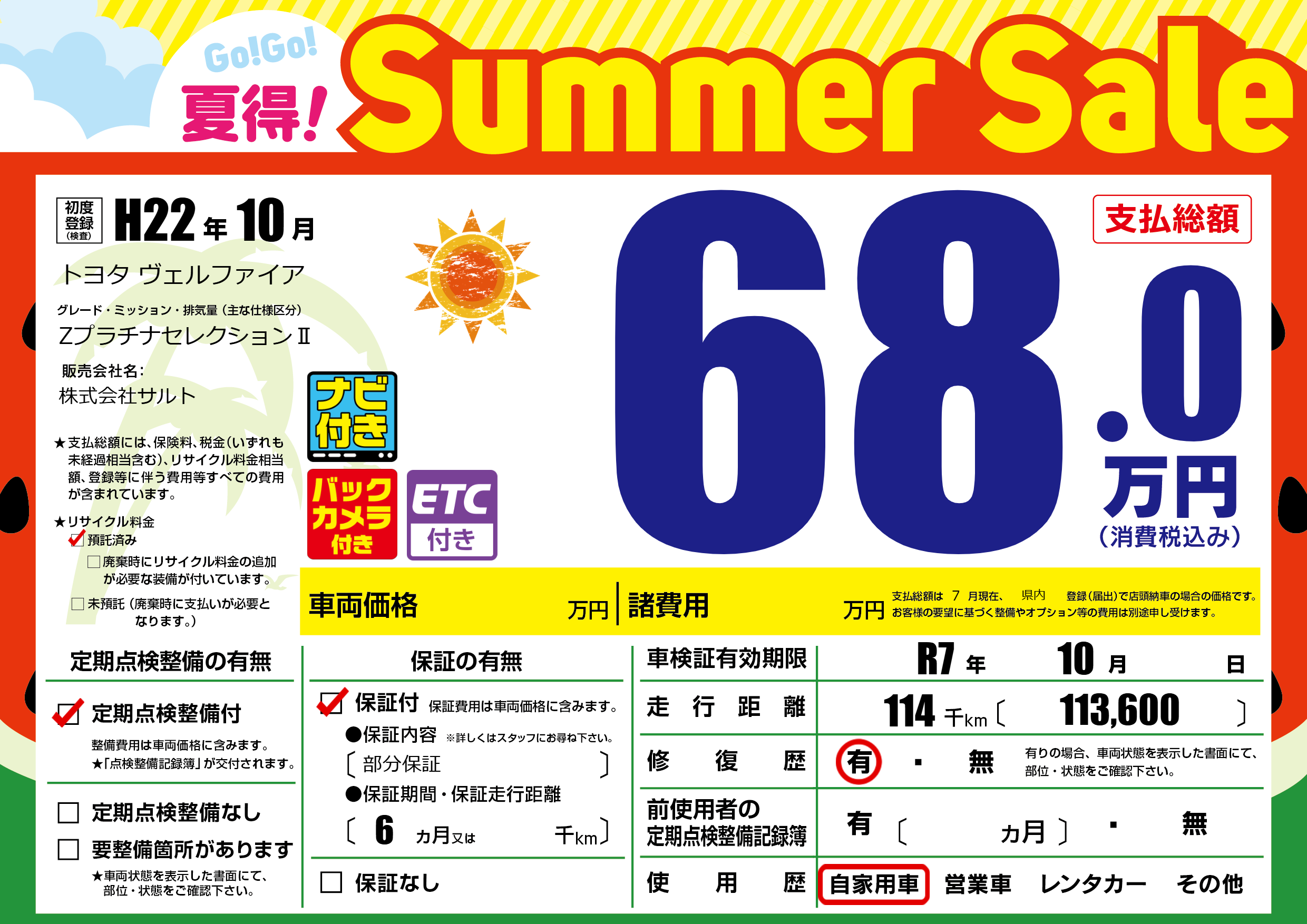 | 車名 | トヨタ ヴェルファイア | グレード ミッション 排気量 |