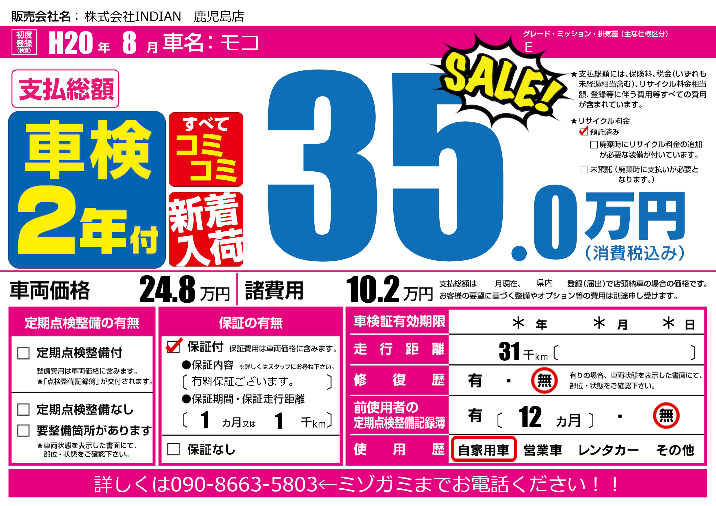 保証内容(有料保証ございます。) 1ヶ月または1千km