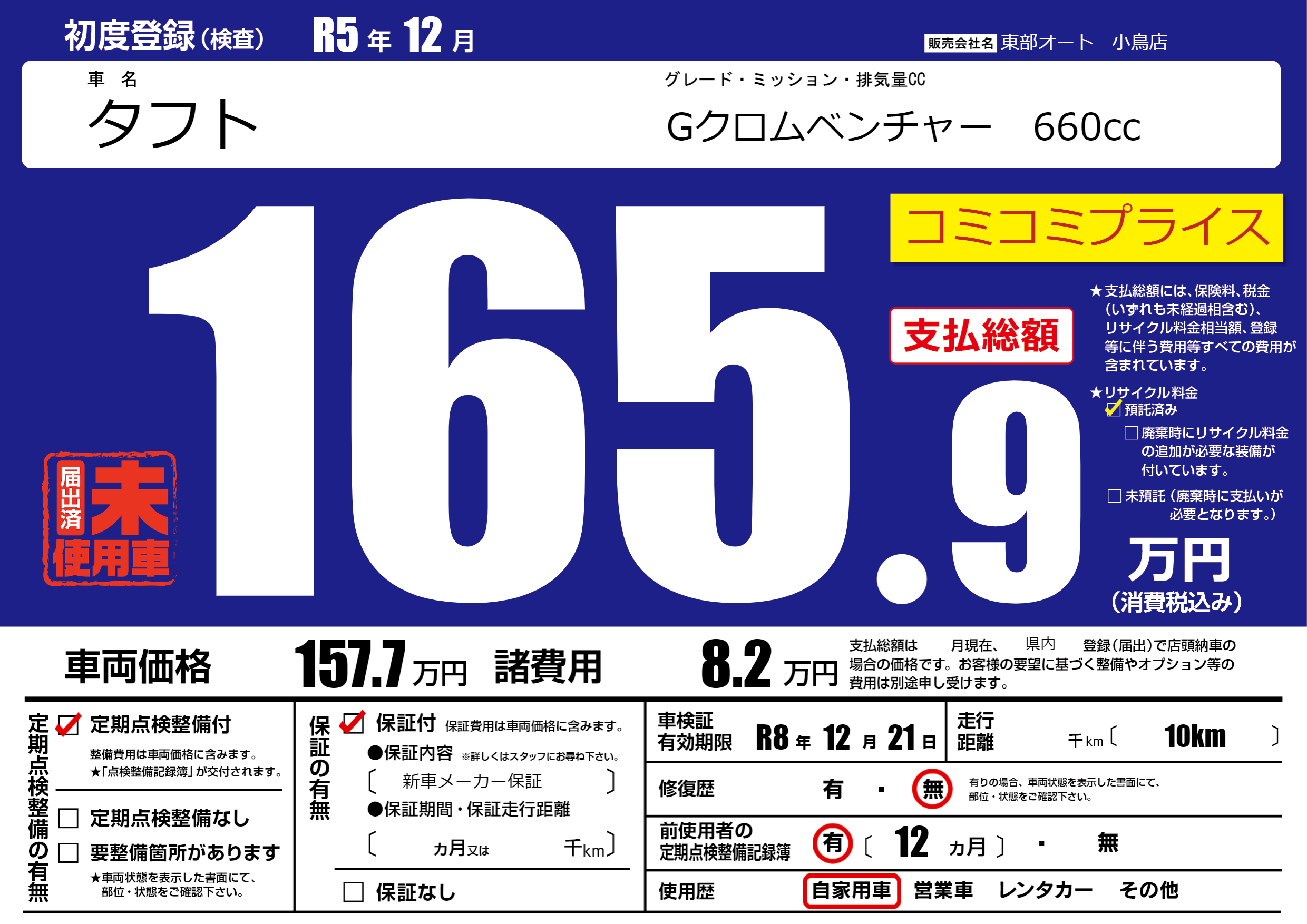 | 走行キロ | - | 初年度登録 | R5年12月 |