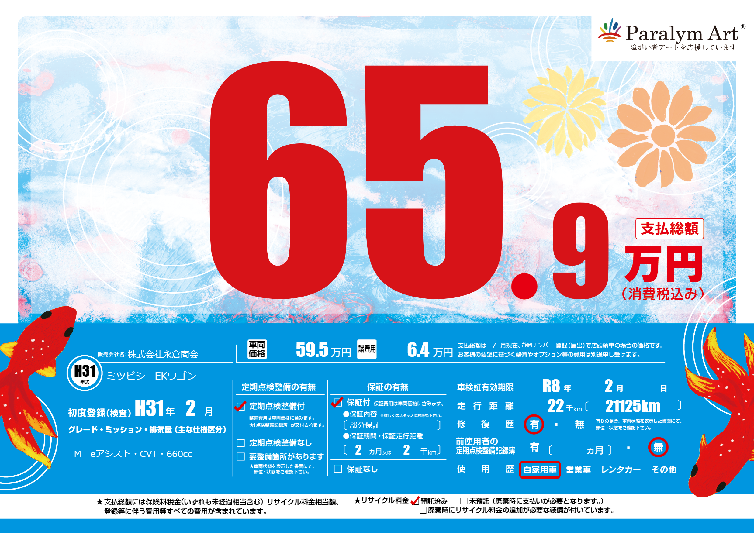 | 走行キロ | 2.2万km | 初年度登録 | H31年2月 |