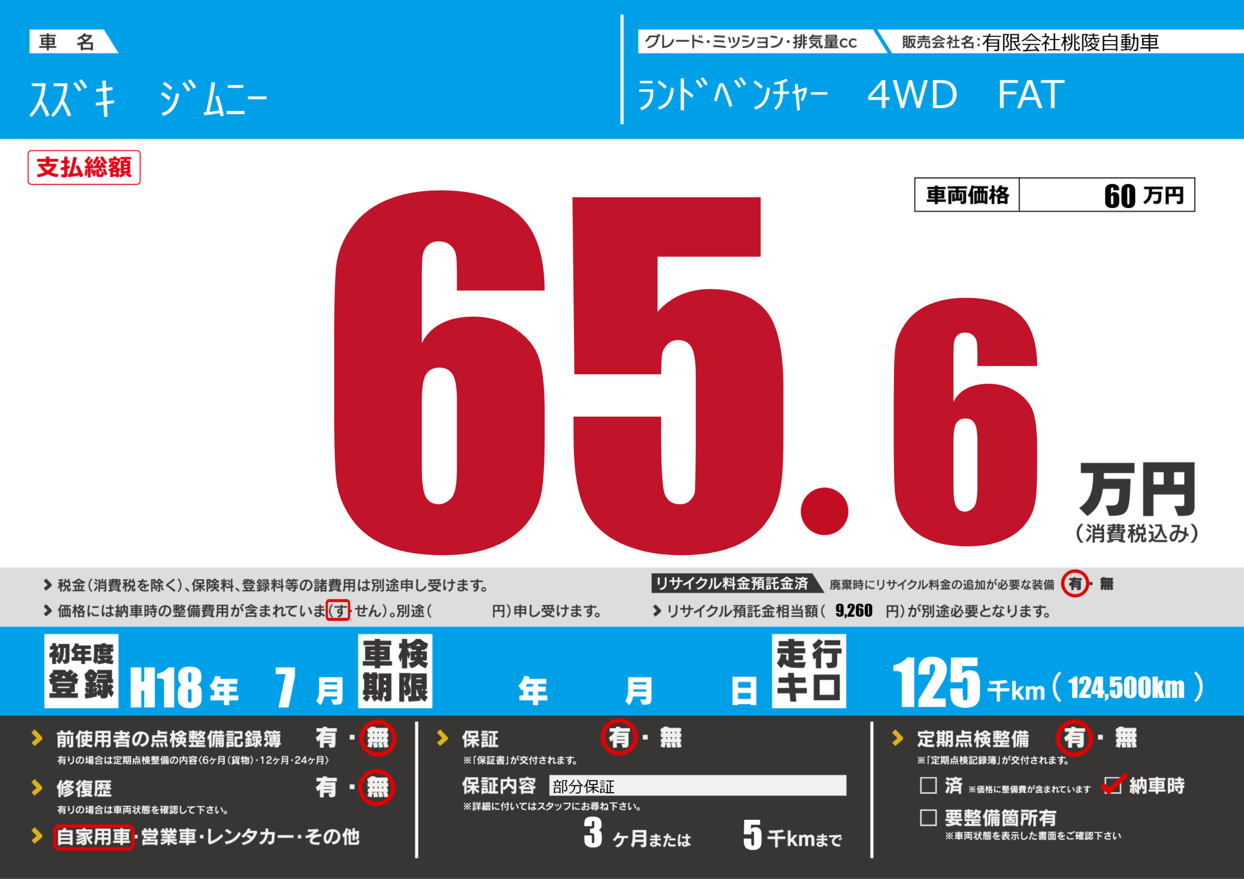 保証付き 保証内容(部分保証) 3ヶ月または(5)千kmまで |