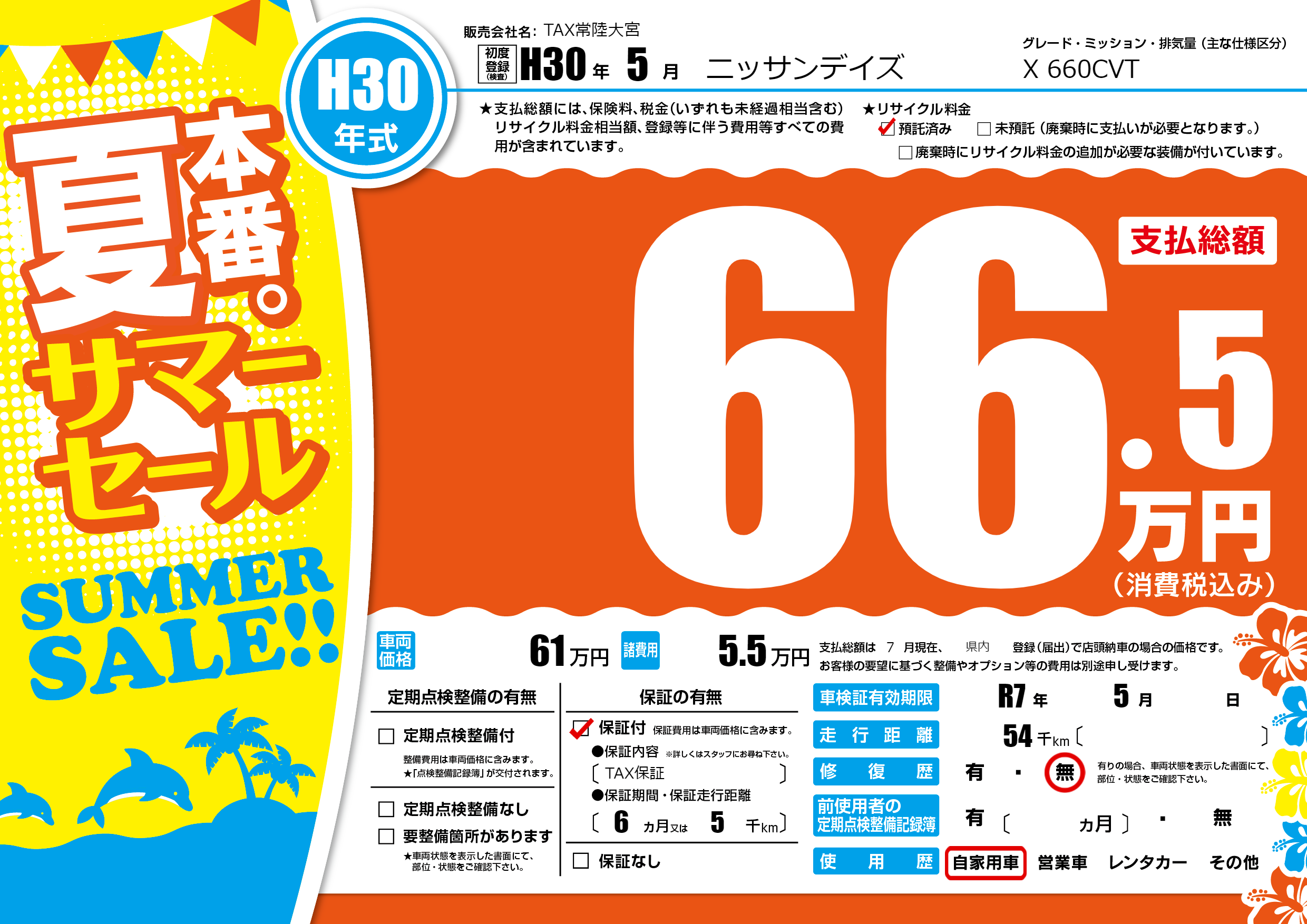 | 車名 | ニッサンデイズ | グレード ミッション 排気量 |