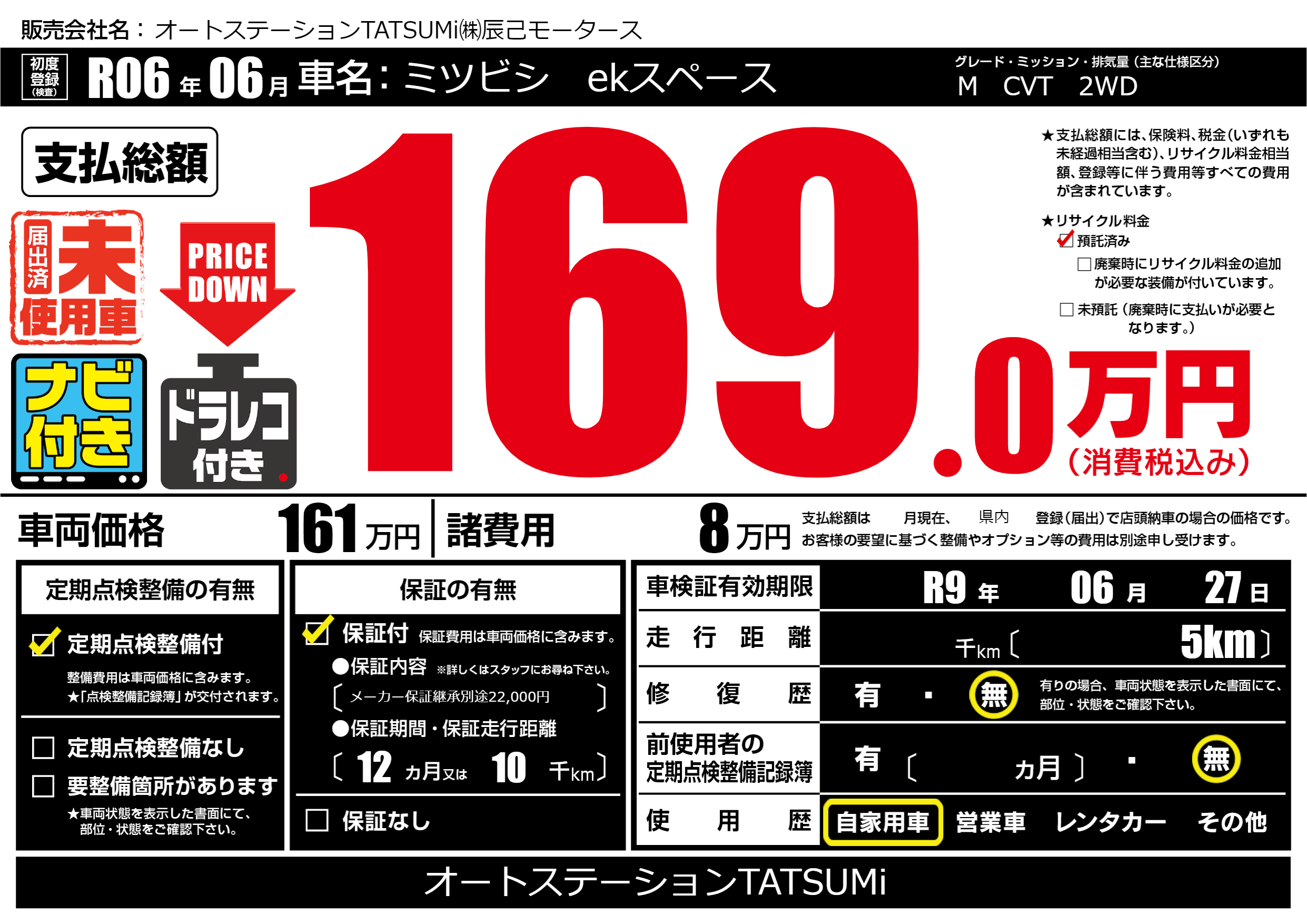 | 走行キロ | - | 初年度登録 | R06年06月 |