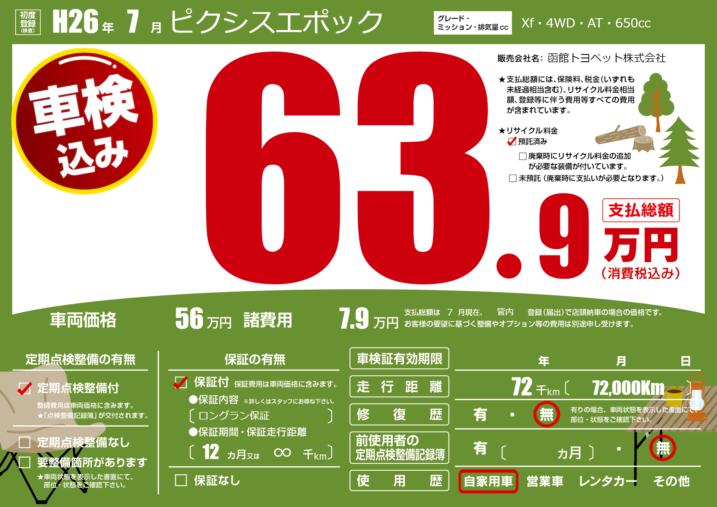 | 定期点検整備 | 定期点検整備あり | ||