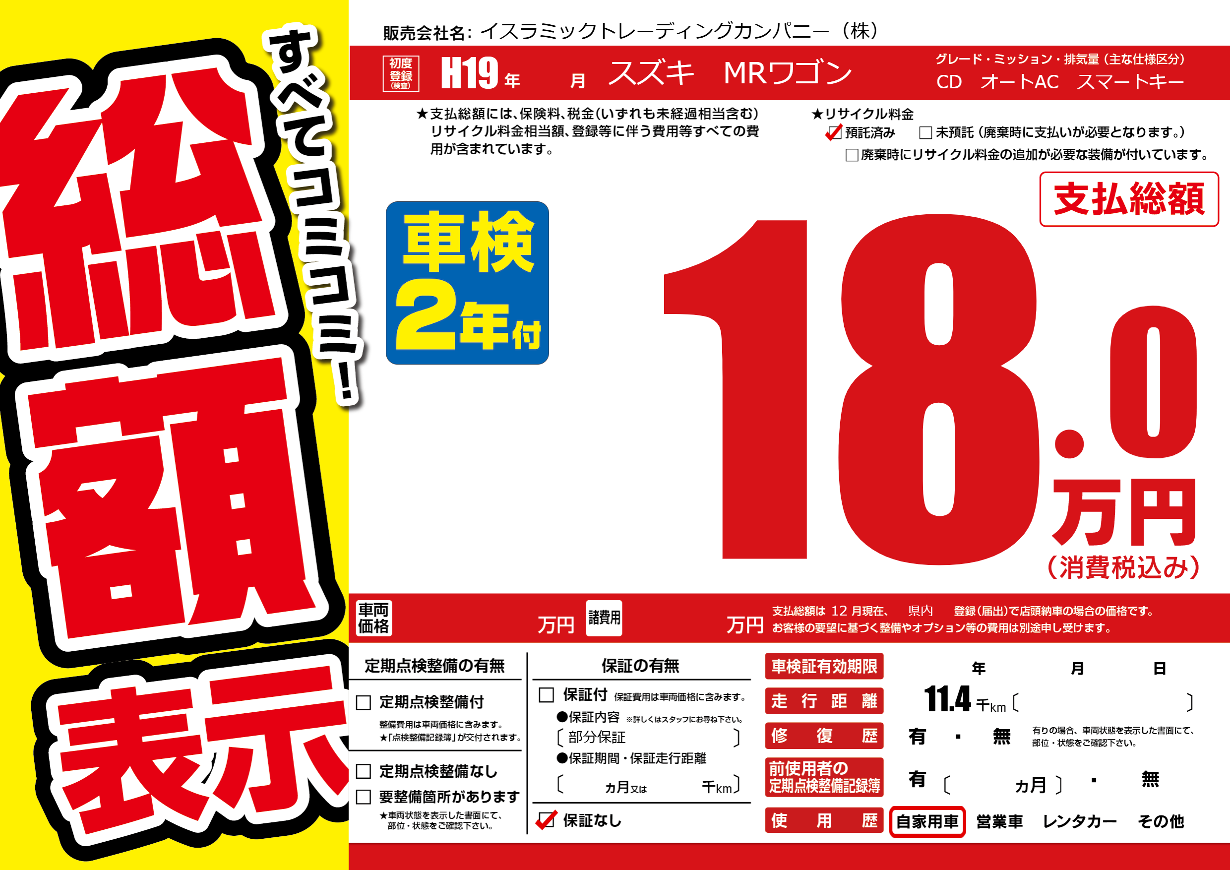 保証なし 保証内容(部分保証) ---ヶ月または()千kmまで |