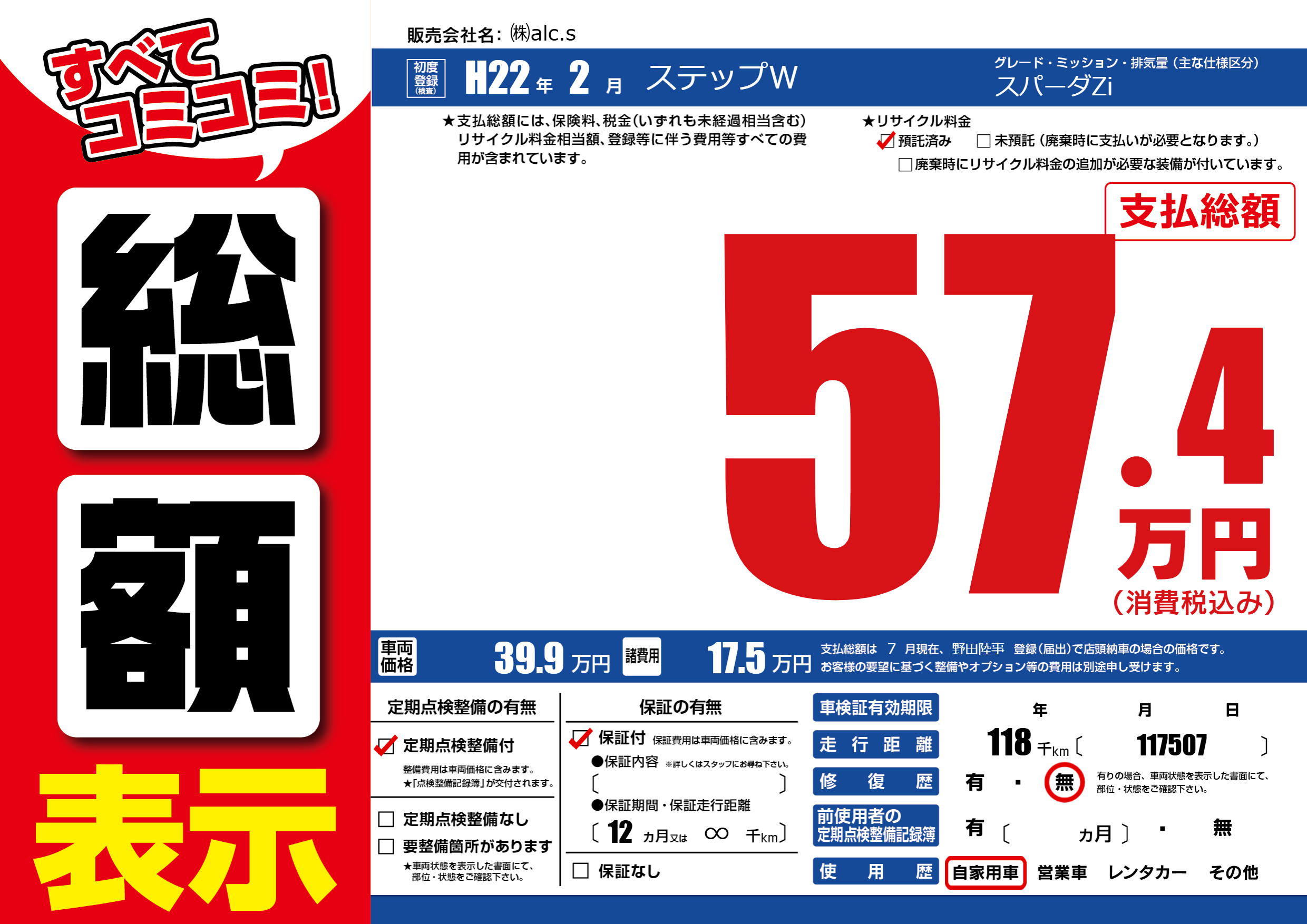| 車名 | ステップW | グレード ミッション 排気量 |