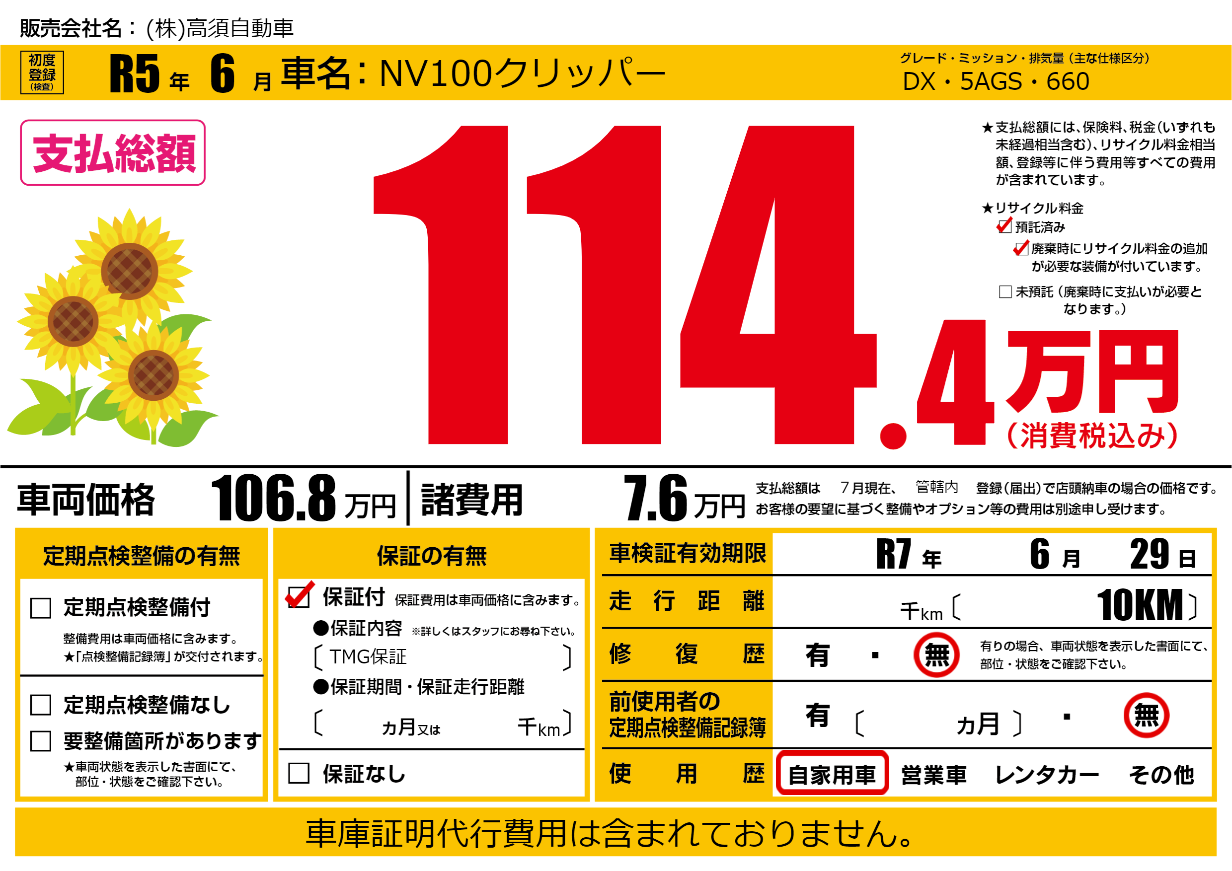 なし | 車検制限 | R7年6月29月 |