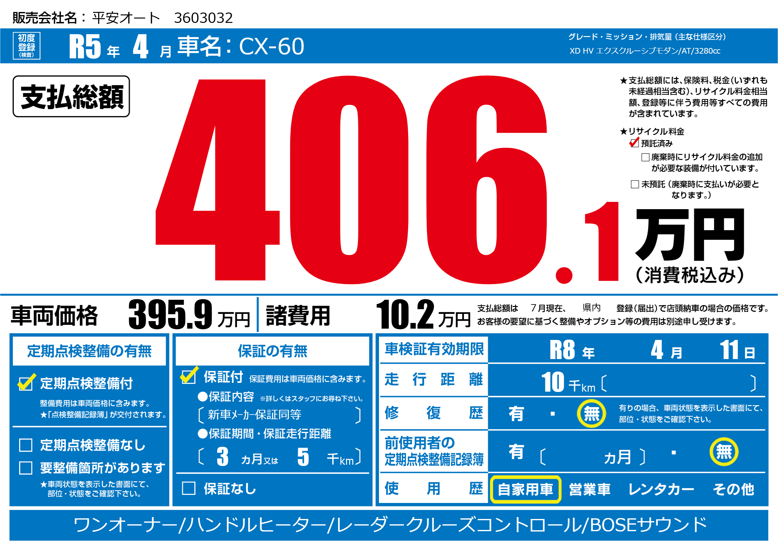 | 定期点検整備 | 定期点検整備あり | ||