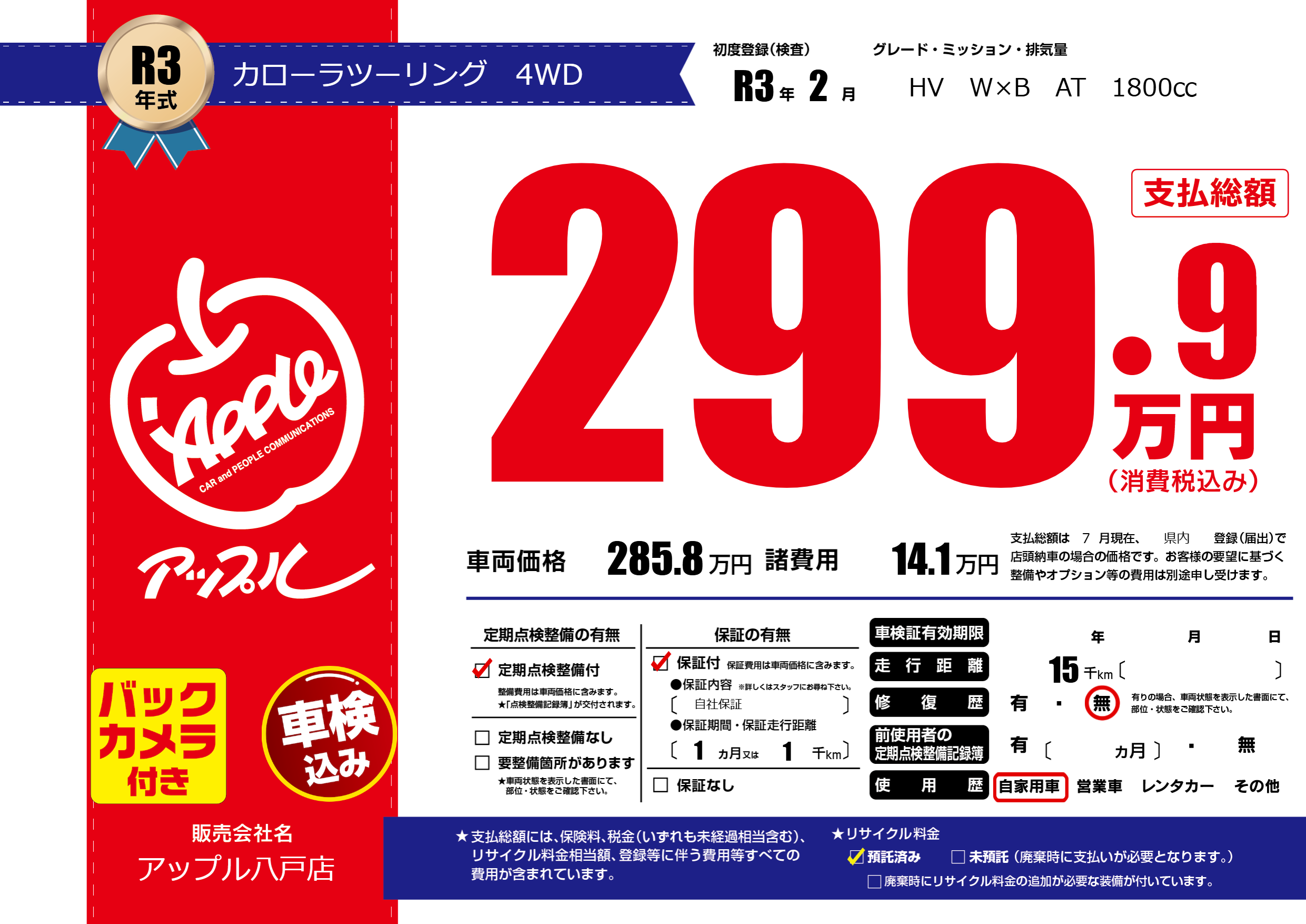 | リサイクル料金 預託済 |