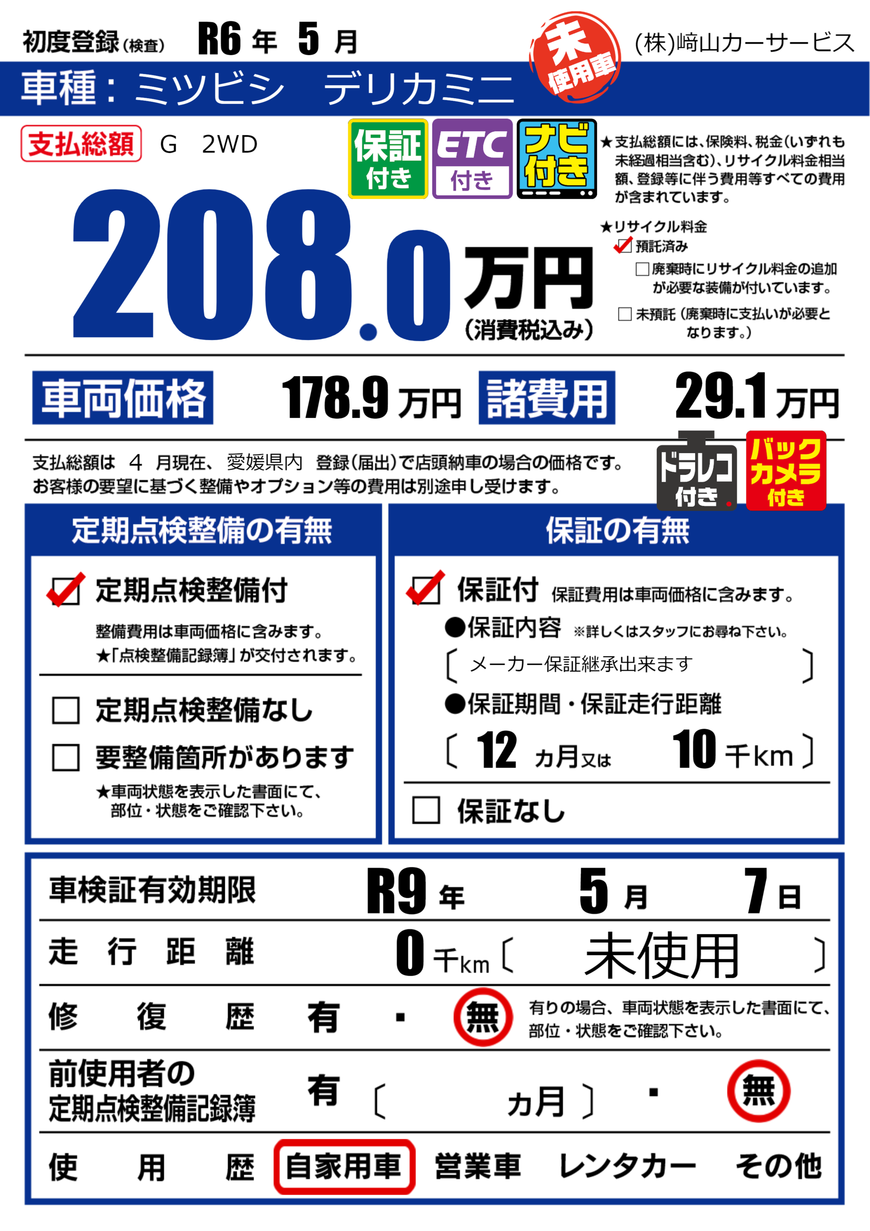 | 走行キロ | - | 初年度登録 | R6年5月 |