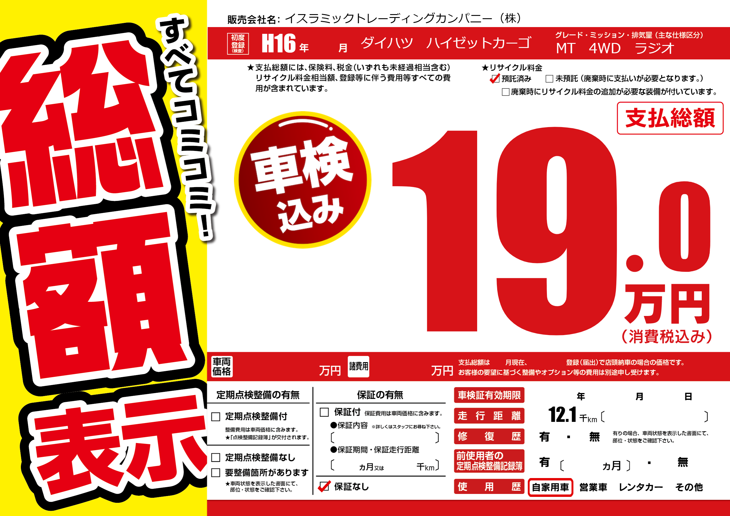 イスラミックトレーディングカンパニー(株)の展示車をすべて見る