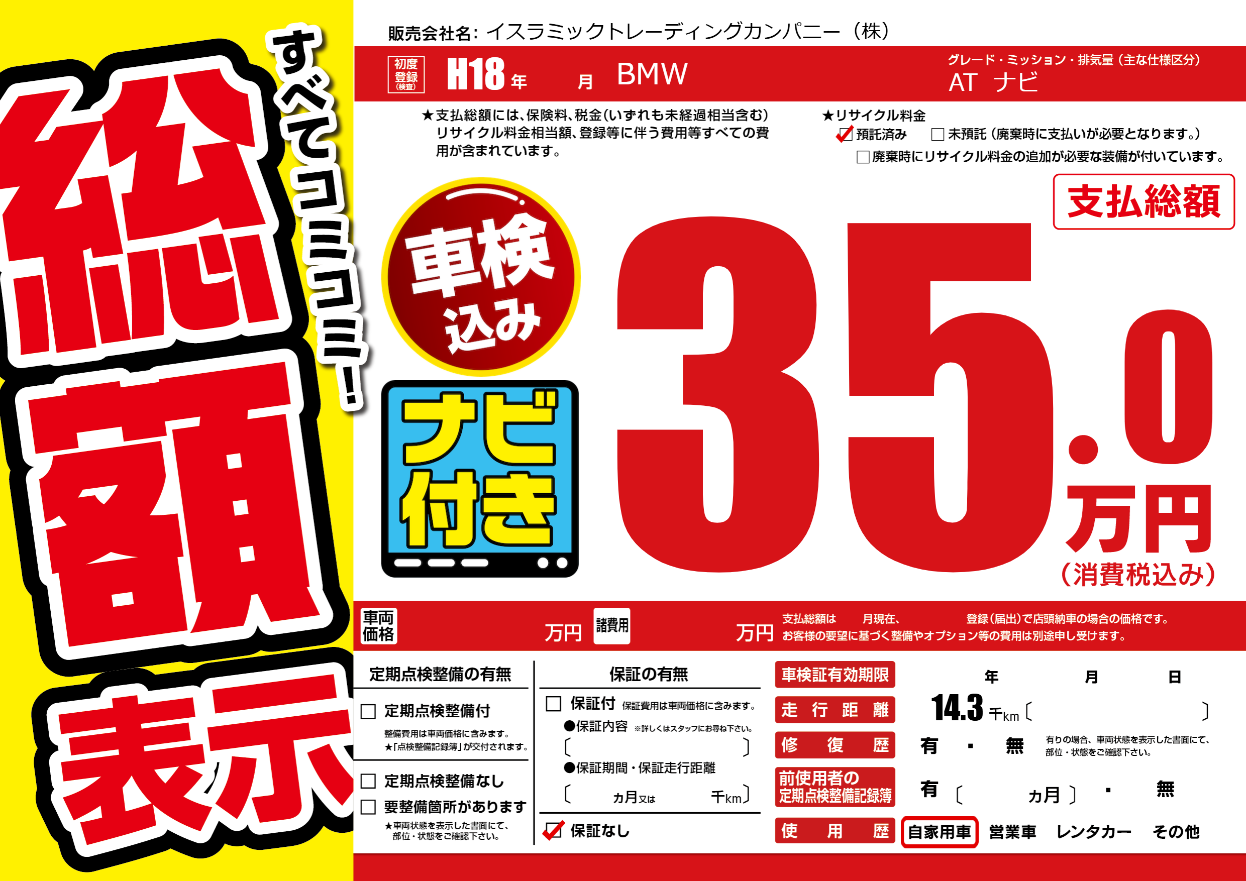 | 走行キロ | 1.4万km | 初年度登録 | H18年---月 |
