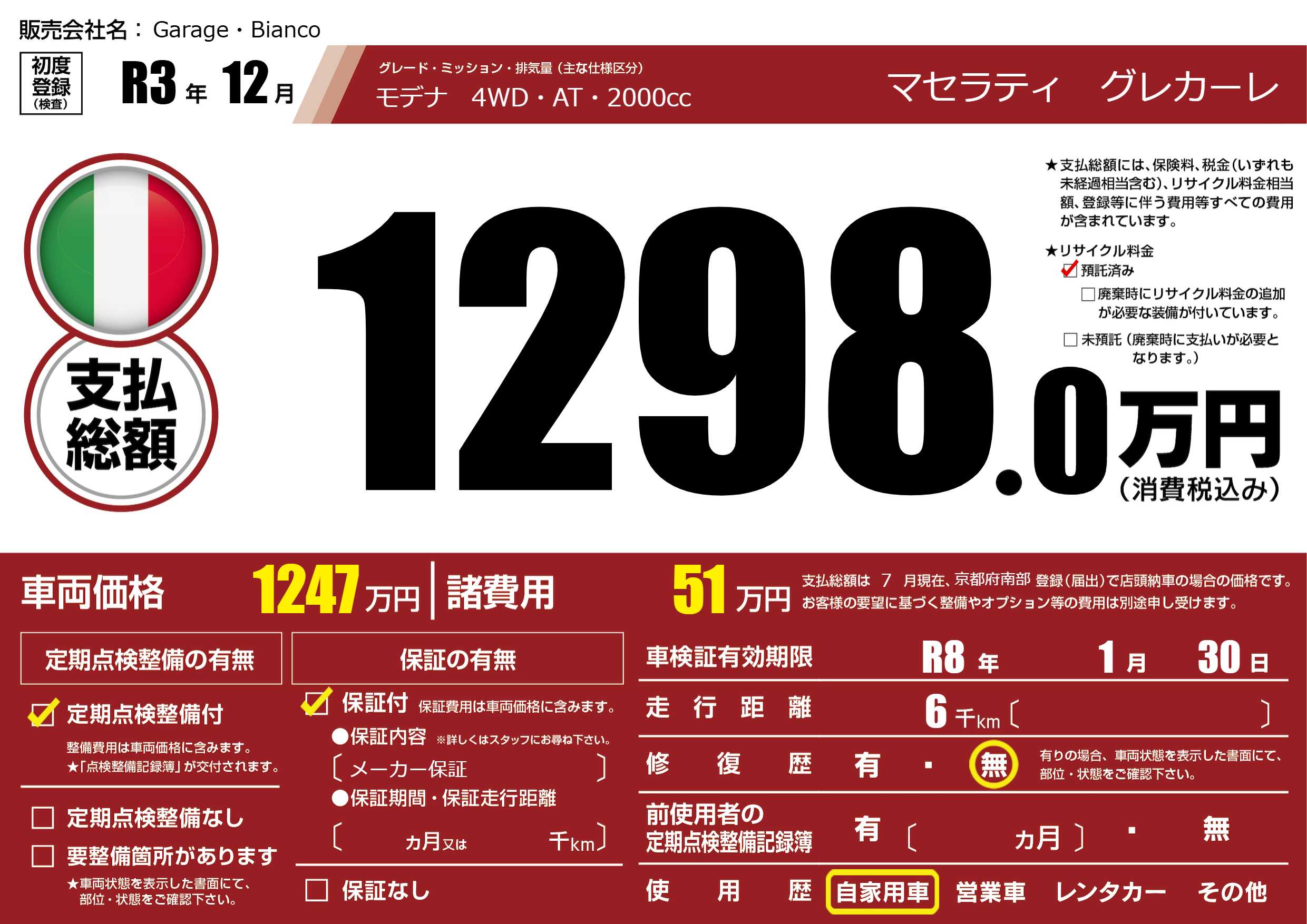 なし | 車検制限 | R8年1月30月 |