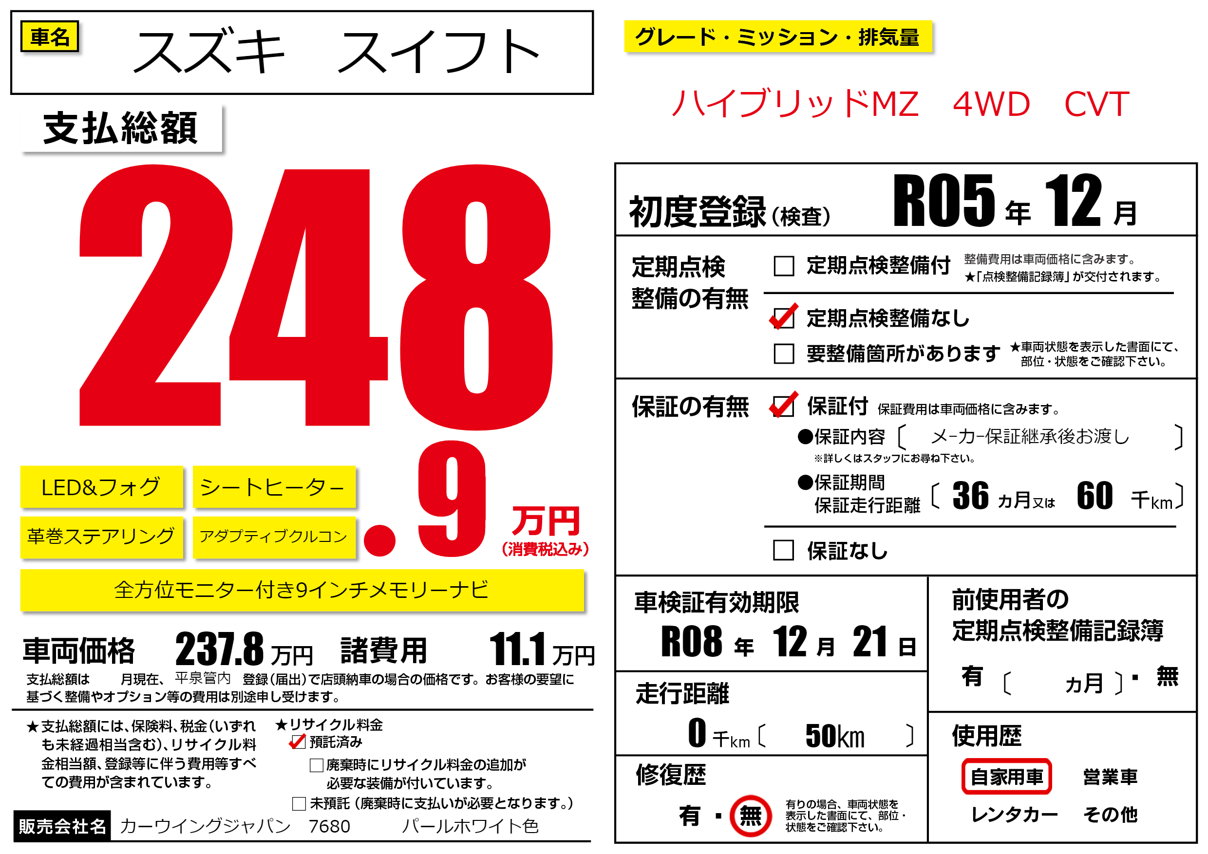 | 走行キロ | - | 初年度登録 | R05年12月 |