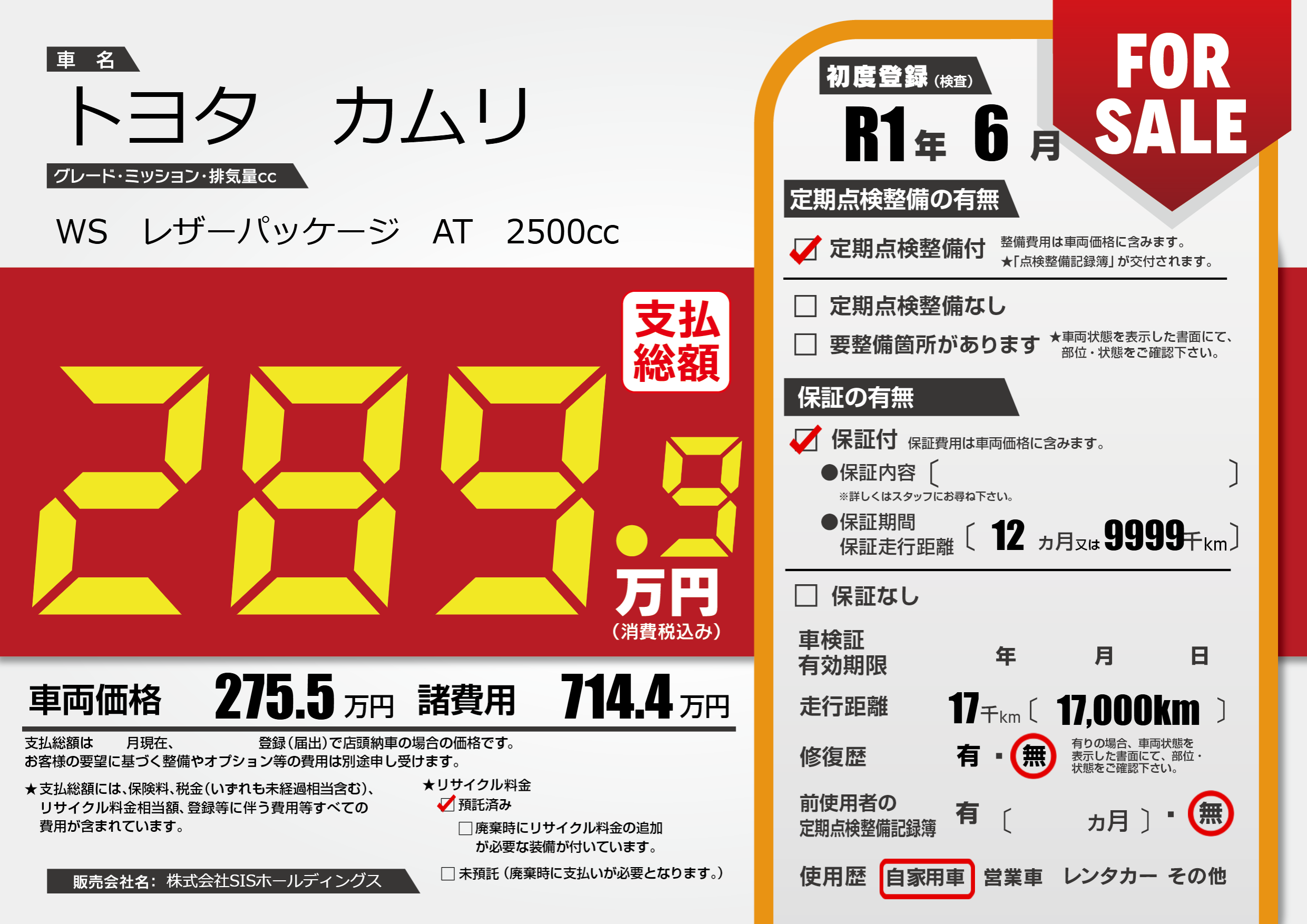 | 走行キロ | 1.7万km | 初年度登録 | R1年6月 |