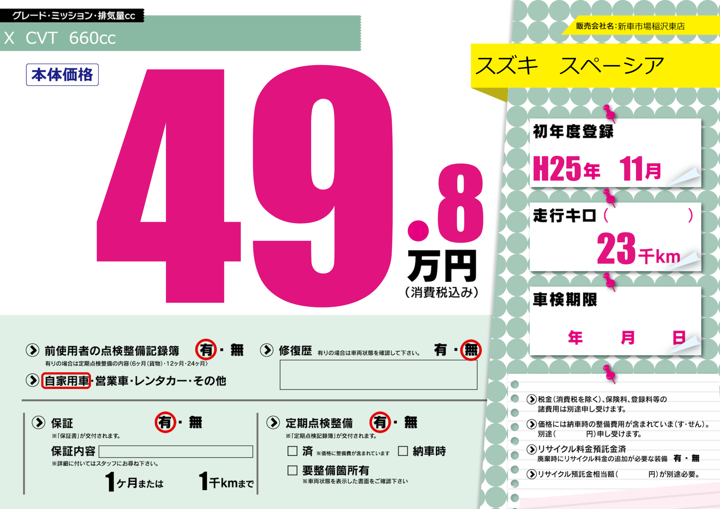 | 車検制限 | - 年 - 月 - 日 | ||