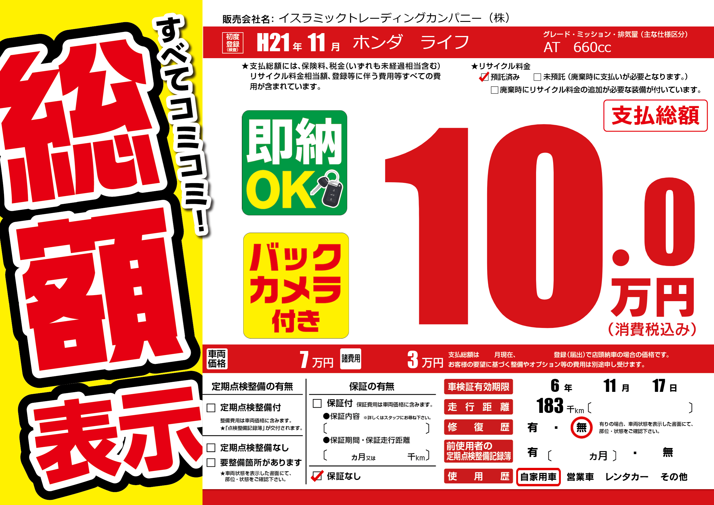 なし | 車検制限 | 6年11月17月 |
