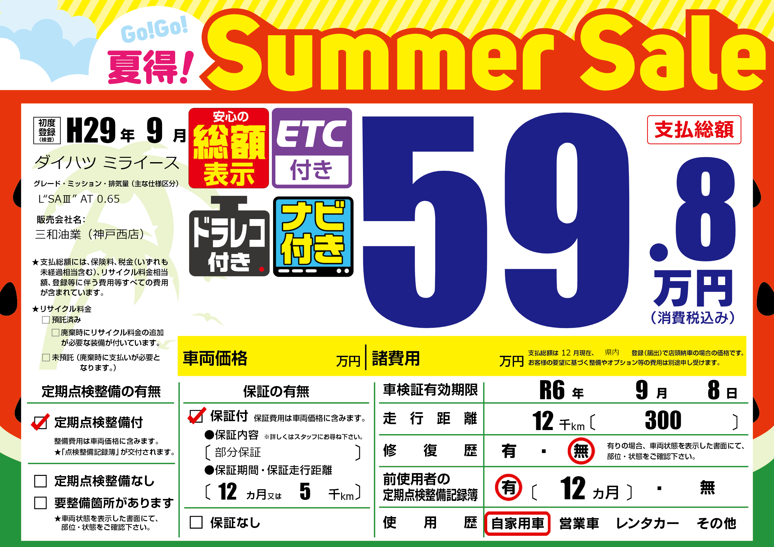 | 走行キロ | 1.2万km | 初年度登録 | H29年9月 |