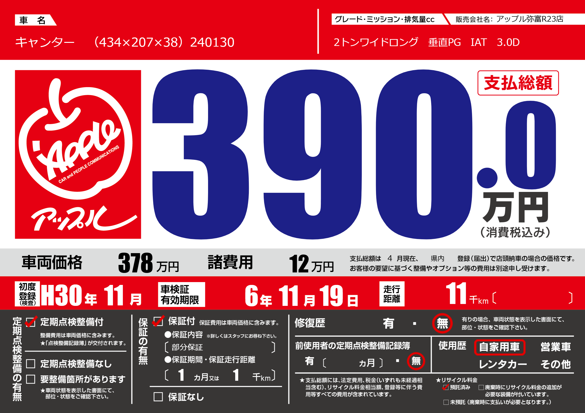 | 初年度登録 | H30年11月 | ||
