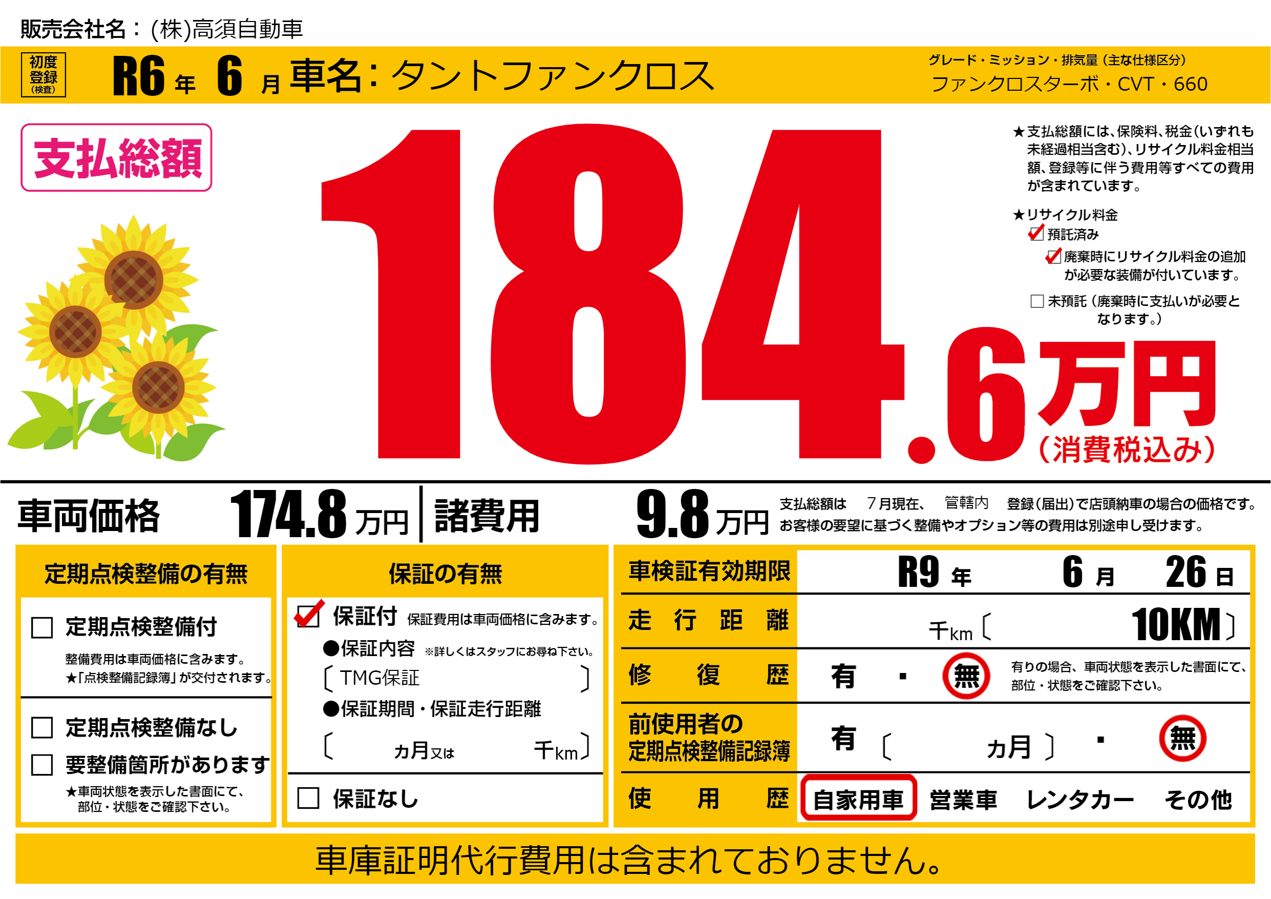 | 走行キロ | - | 初年度登録 | R6年6月 |