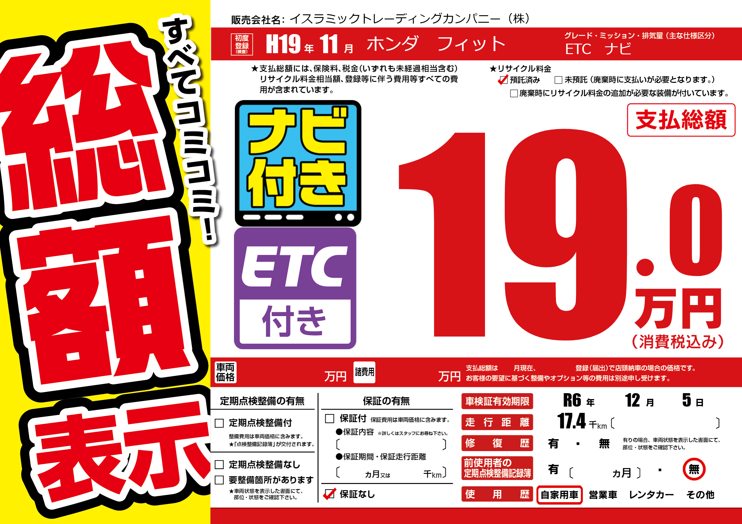 | 車検制限 | R6年 12月 5日 | ||