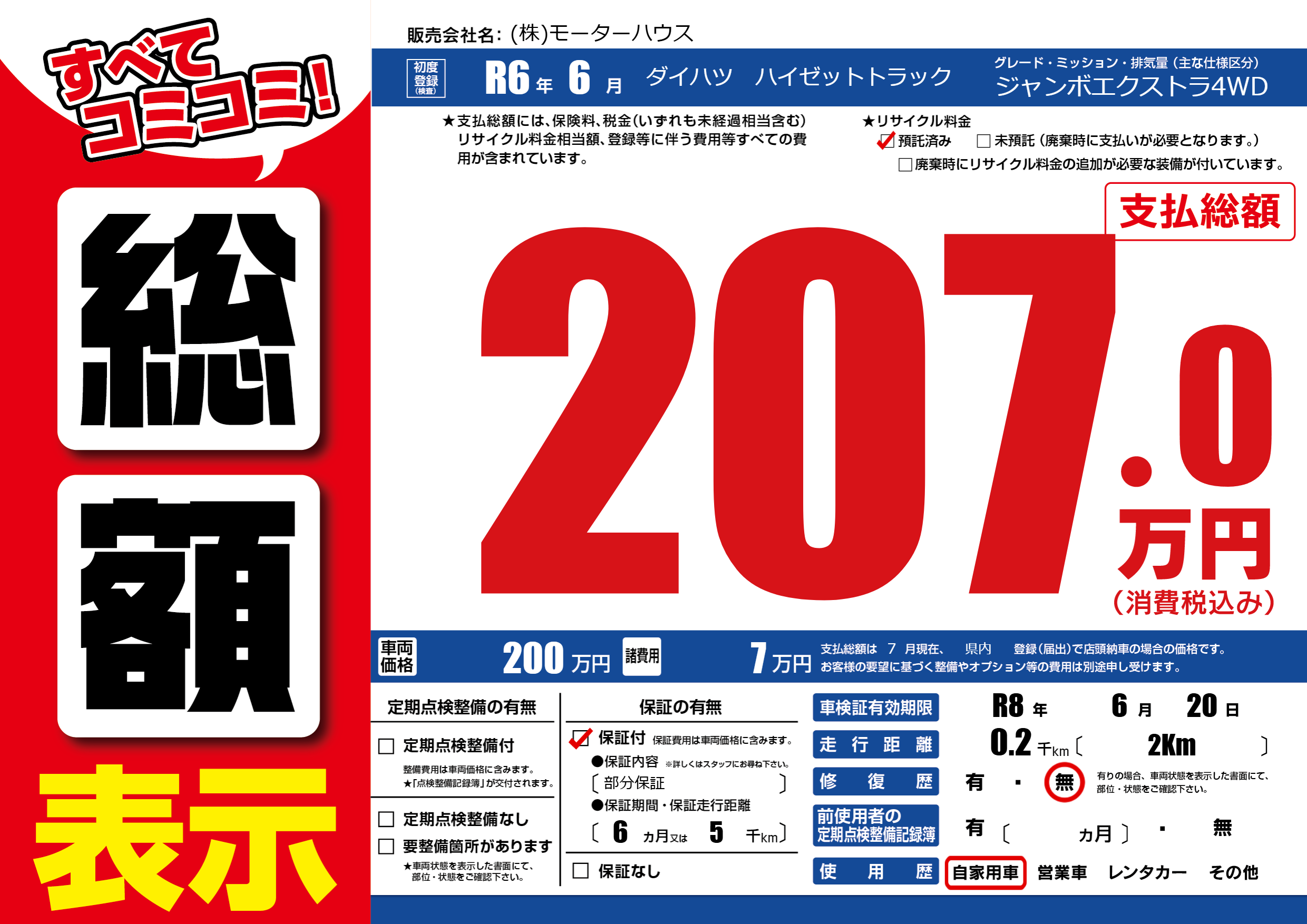 保証なし 保証内容(部分保証) 6ヶ月または(5)千kmまで |