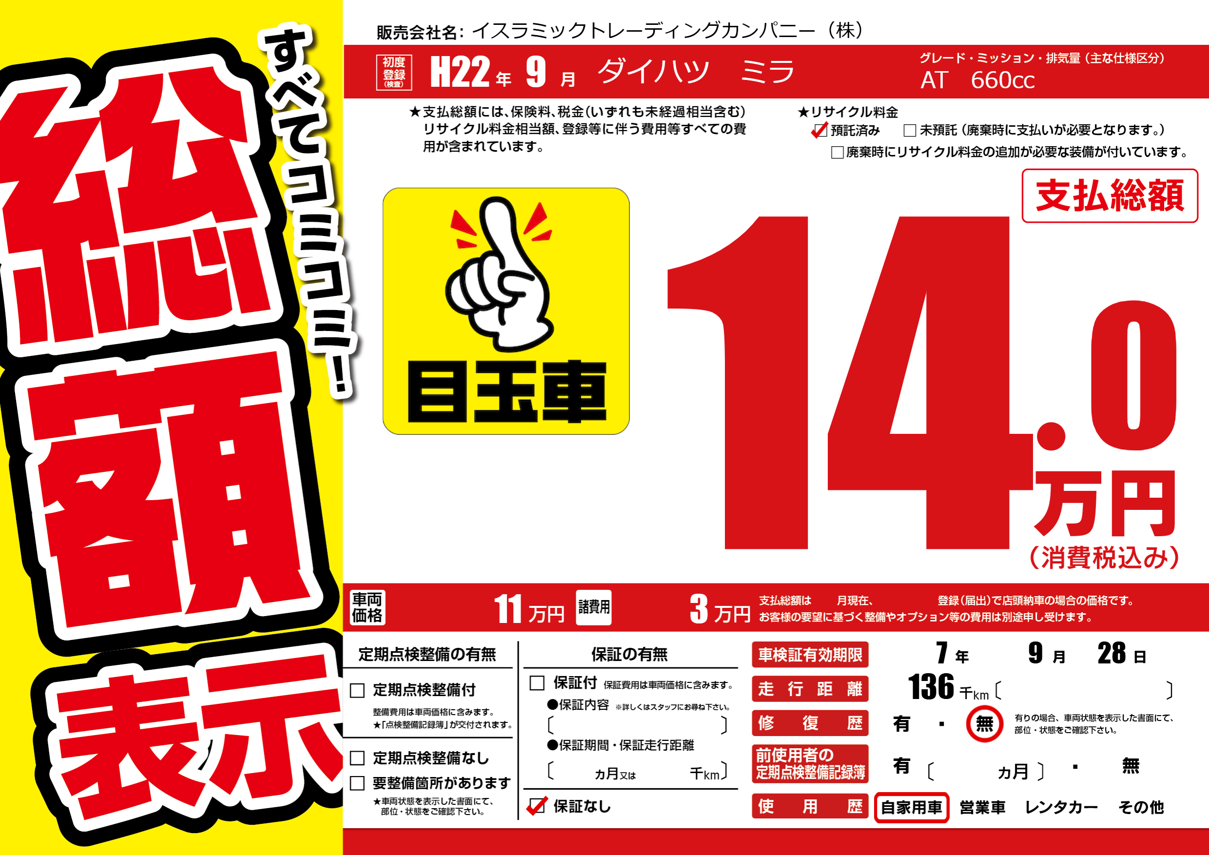 | 車検制限 | 7年 9月 28日 | ||