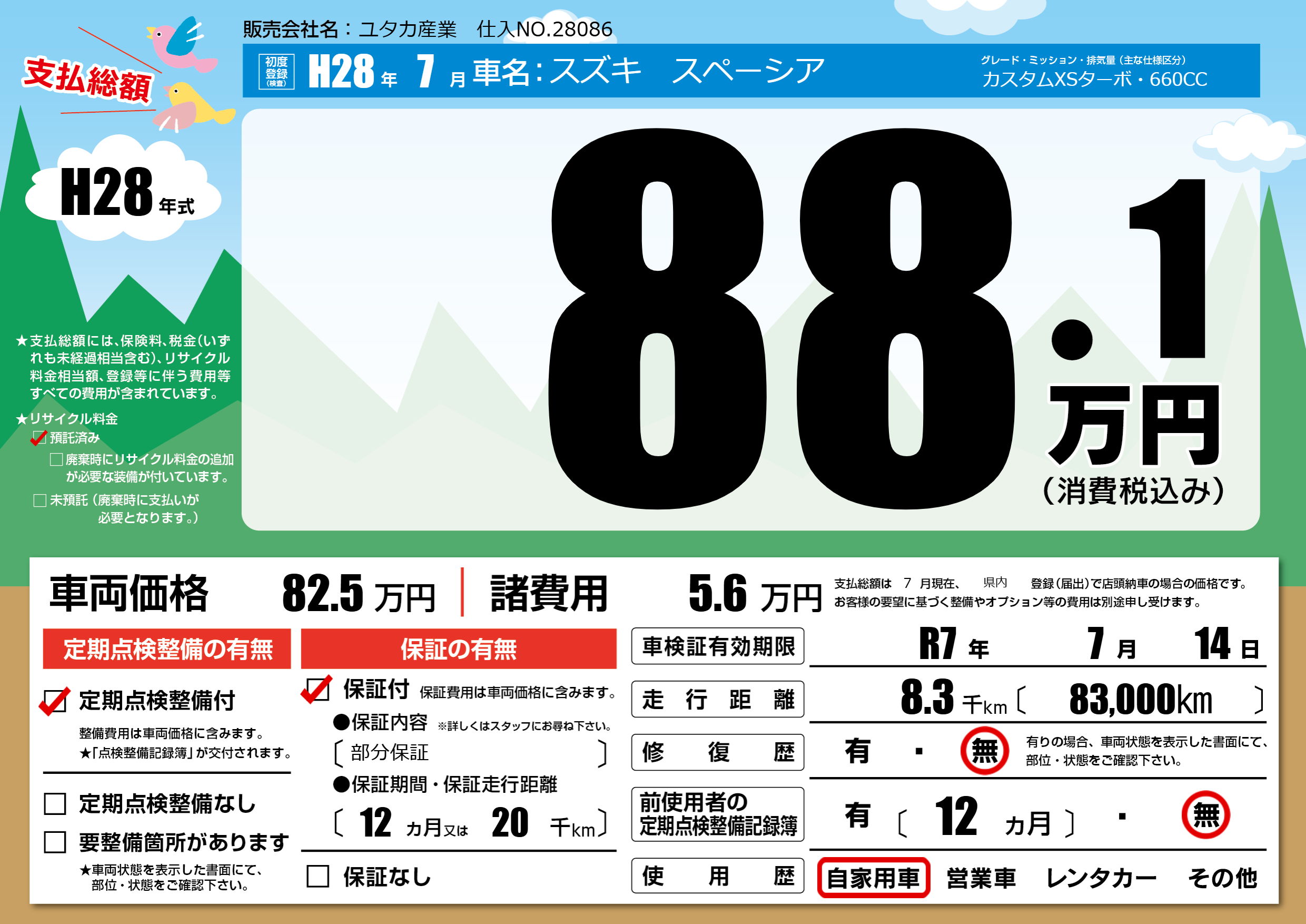 なし | 車検制限 | R7年7月14月 |