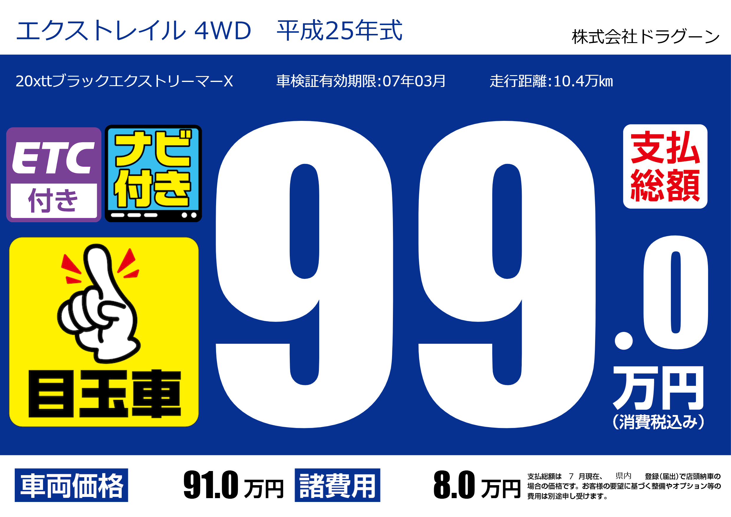 | 車名 | エクストレイル 4WD 平成25年式 | グレード ミッション 排気量 |