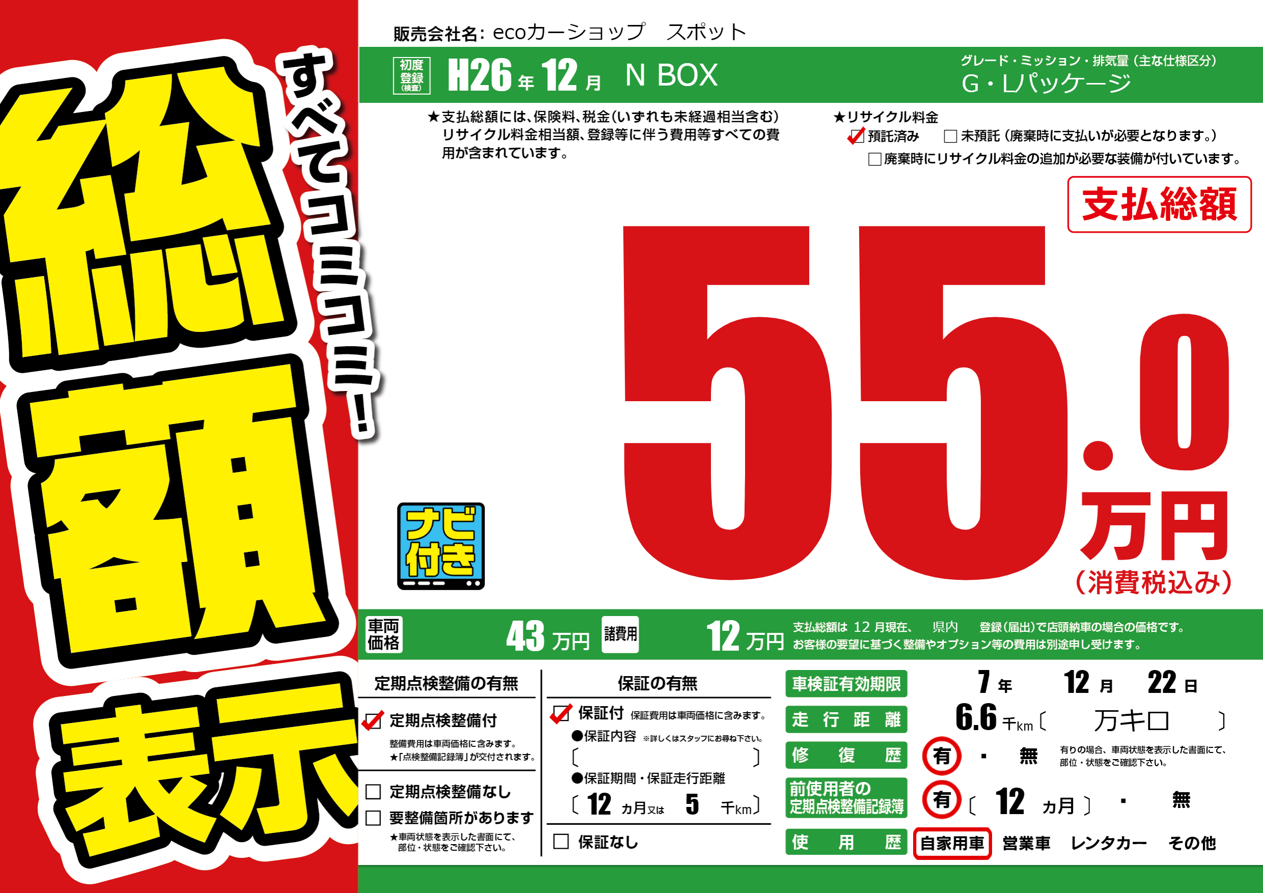 なし | 車検制限 | 7年12月22月 |