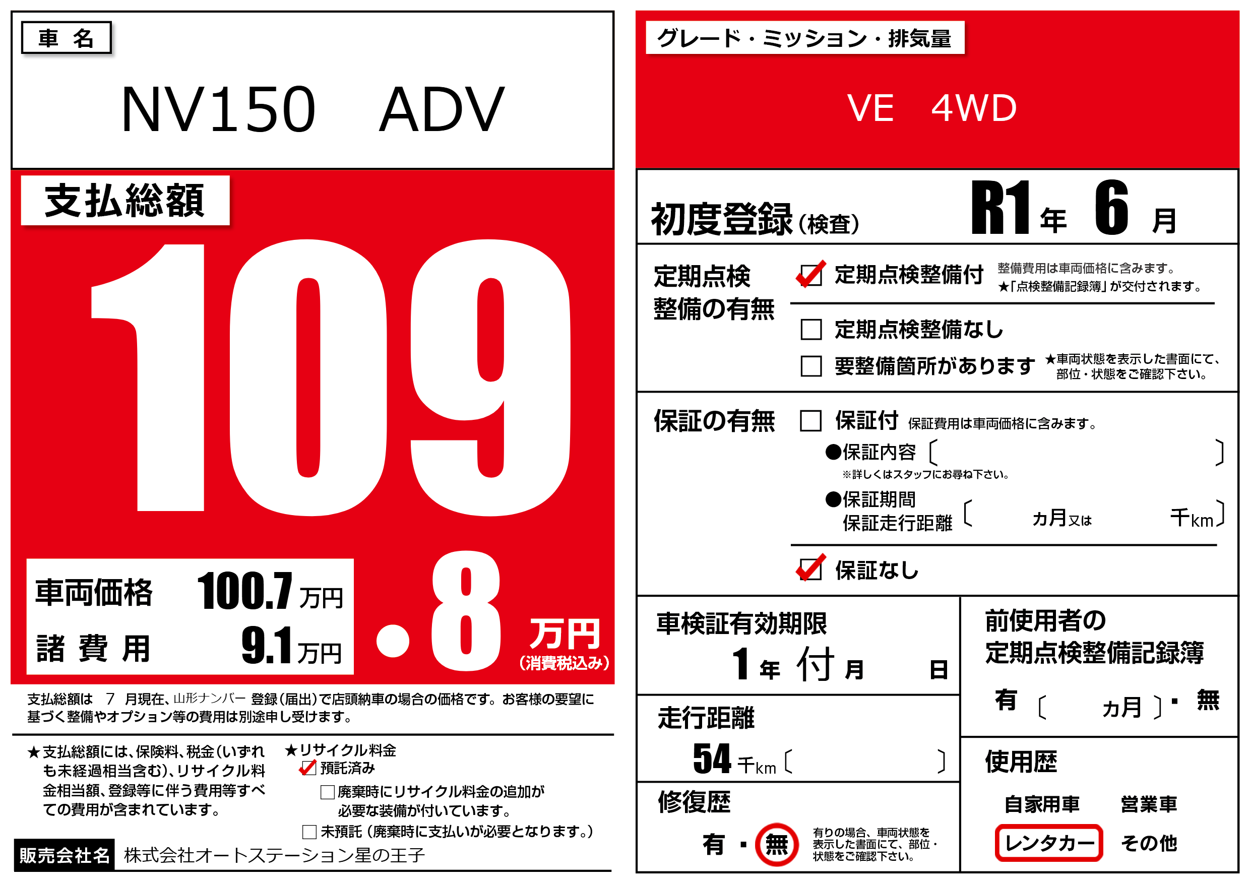 | 車名 | NV150 ADV | グレード ミッション 排気量 |