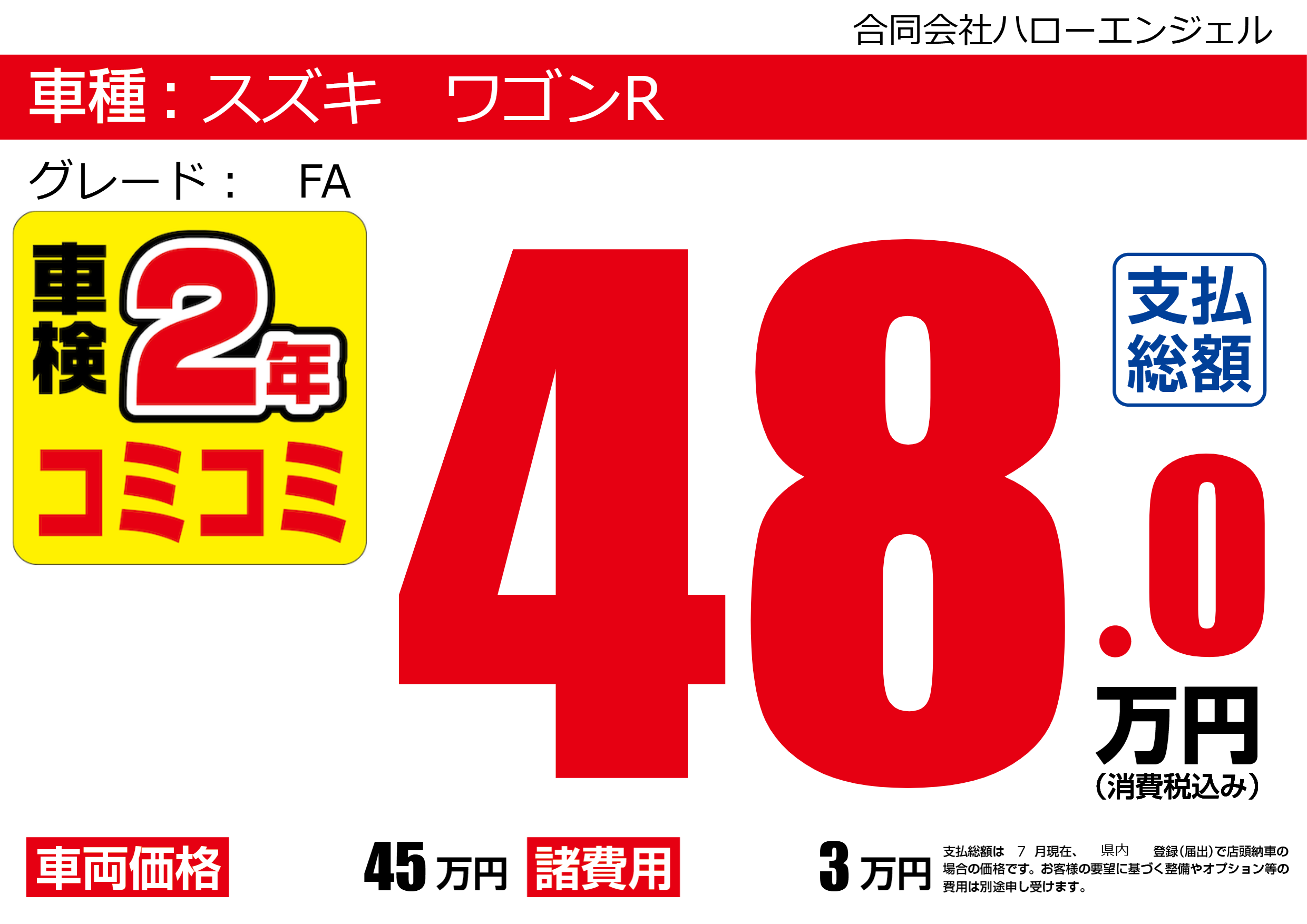 | 車名 | スズキ ワゴンR | グレード ミッション 排気量 |