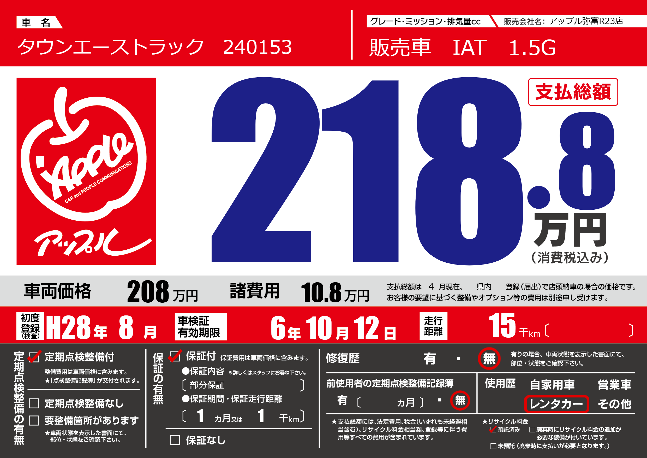 | 車名 | タウンエーストラック 240153 | グレード ミッション 排気量 |