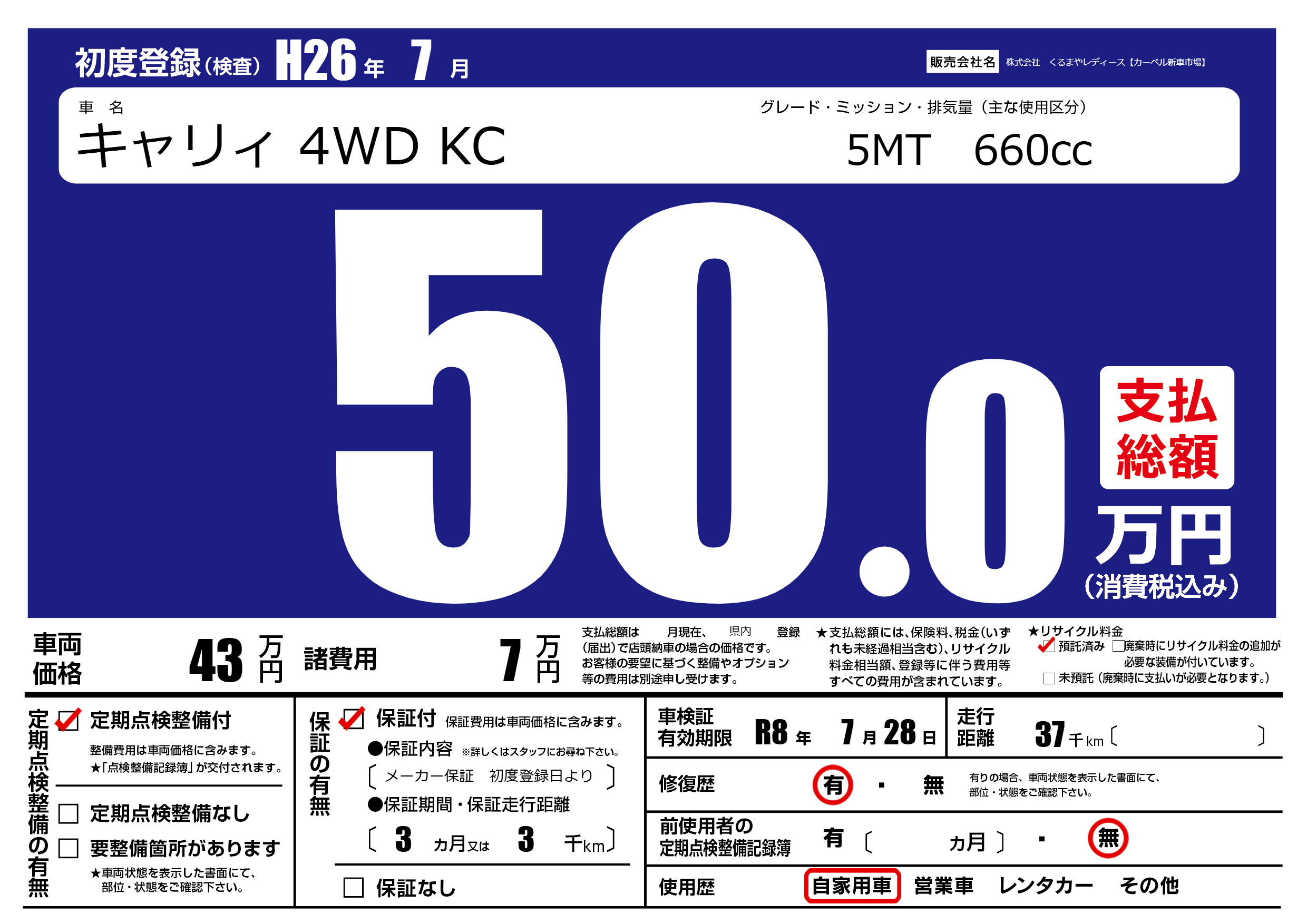 | 車検制限 | R8年 7月 28日 | ||