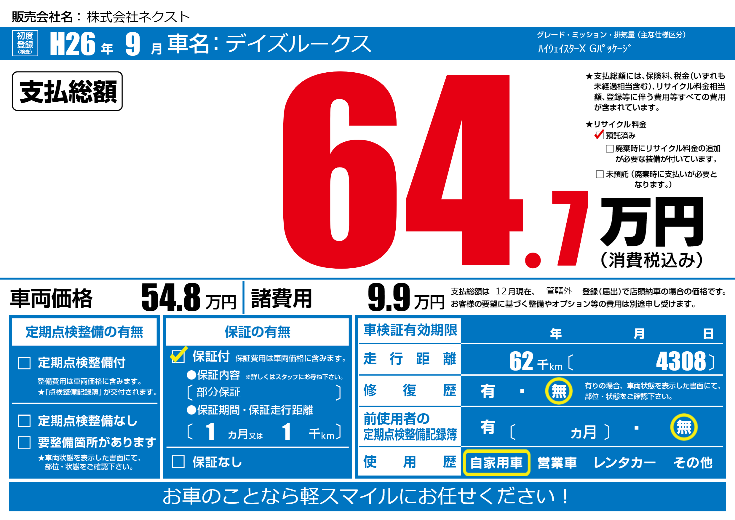 | 初年度登録 | H26年9月 | ||