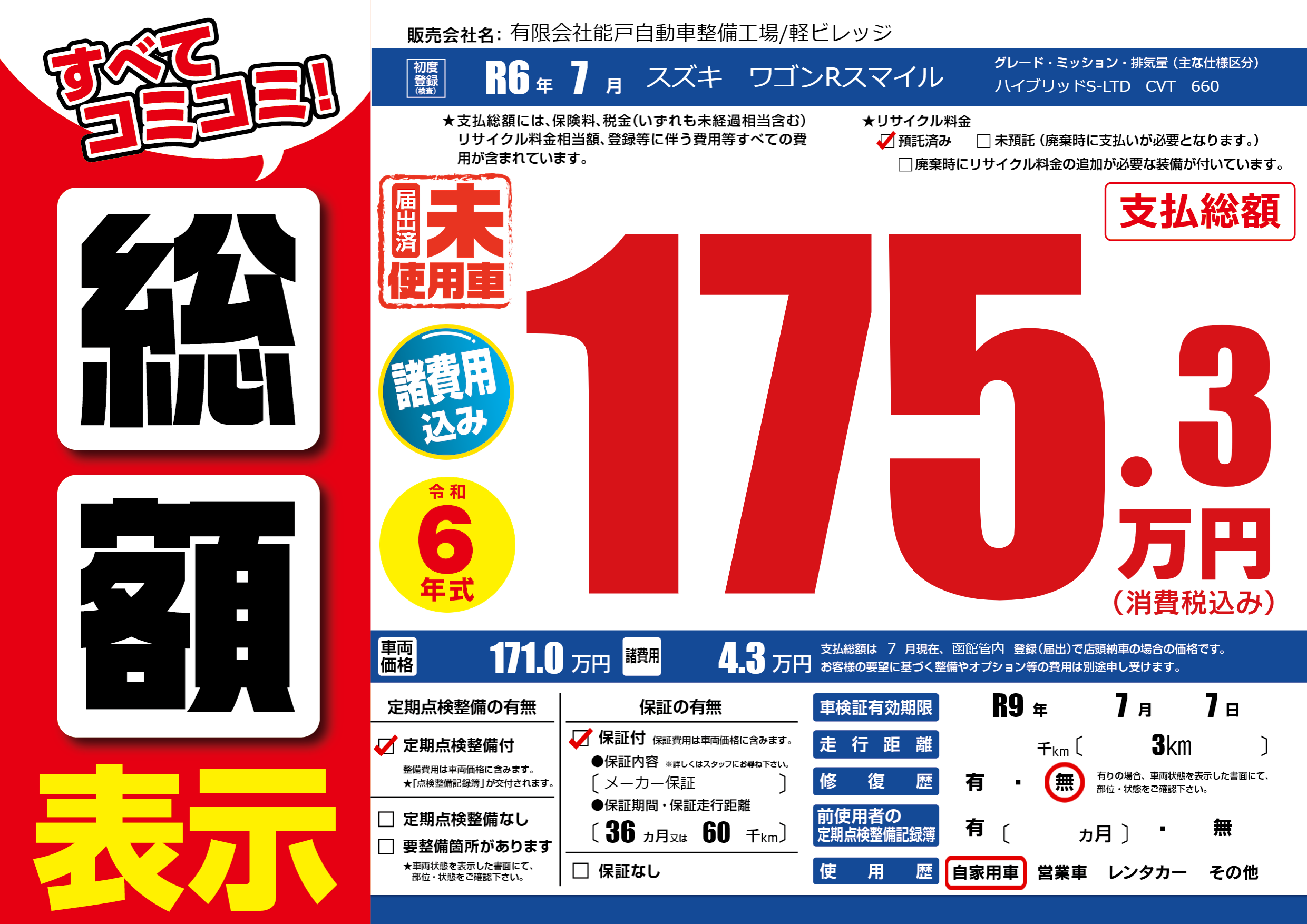 | 車名 | スズキ ワゴンRスマイル | グレード ミッション 排気量 |